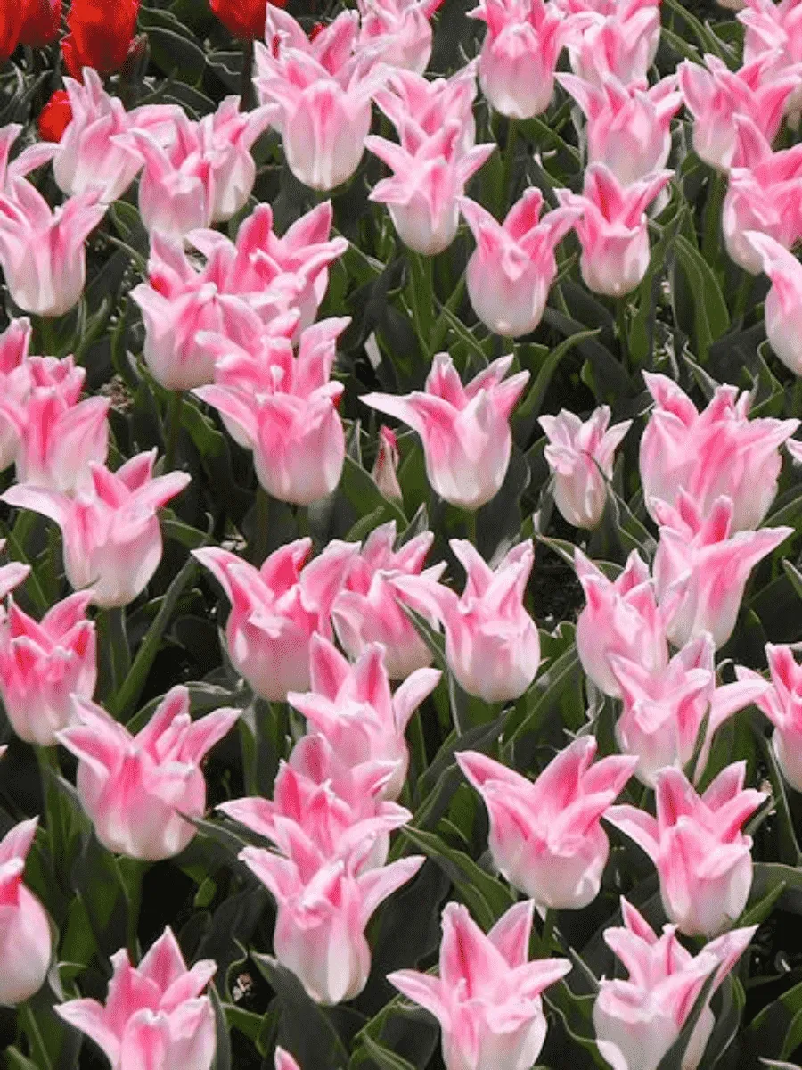 Тюльпан *Holland Chik* пленяет взор своей изысканной красотой и благородством форм. Его крупные цветки раскрываются широкими чашевидными бутонами, словно распускающиеся золотые звёзды, сияющие нежной оранжево-красной палитрой с золотистым отливом. Листья удлинённые, гладкие, насыщенно-зелёного цвета, подчёркивающие элегантность стебля и утончённость цветка. Высота растений достигает 45–60 см, создавая стройную вертикальную линию среди весеннего сада. Цветёт тюльпан *Holland Chik* ранней весной, радуя глаз яркими красками после долгой зимы. Этот сорт прекрасно адаптируется к различным почвенным условиям, устойчив к заморозкам и болезням, легко размножается луковицами, формируя живописные группы на клумбах и альпийских горках.