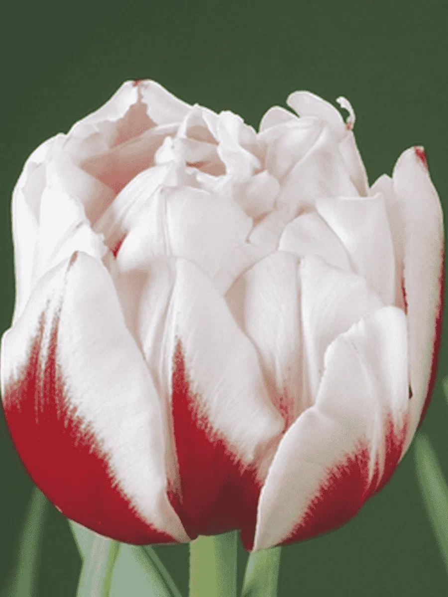 Тюльпан махровый *Horizon* пленяет взор своей изысканной красотой и нежностью форм. Его крупные цветки раскрываются пышной чашей, состоящей из множества лепестков, словно сотканных из тонкого шелка. Лепестки окрашены в благородную белоснежность, слегка оттенённую лёгким кремовым налетом, придающим цветкам особую воздушность и утончённость. Листья тюльпана широкие, гладкие, насыщенно-зелёного цвета, подчёркивающие элегантность цветка своим контрастом. Высота стебля достигает около сорока сантиметров, позволяя растению уверенно возвышаться над поверхностью почвы. Цветёт этот великолепный представитель семейства лилейных ранней весной, радуя глаз яркими красками после долгой зимы. Предпочитает солнечные места и плодородные рыхлые почвы, распространён преимущественно в садах и парковых композициях, где становится истинным украшением весеннего ландшафта.