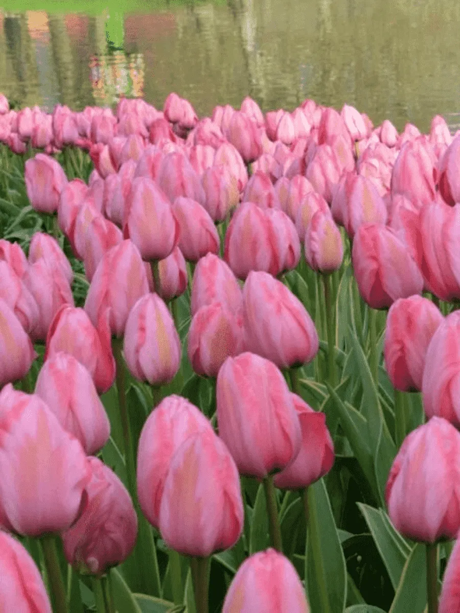 Тюльпан пестролистный *Design Impression* пленяет взор изысканным сочетанием нежной белизны лепестков и ярких штрихов пурпурного цвета, словно художник небрежно провёл кистью по идеально ровному холсту природы. Листья удлинённые, гладкие, насыщенно-зелёного оттенка, подчёркивающие элегантность цветка и гармонично дополняющие общую композицию сада. Цветки крупные, чашевидные, раскрываются навстречу солнечным лучам, демонстрируя свою утончённую красоту во всей полноте. Высота растений варьируется от 45 до 60 см, позволяя использовать тюльпаны как акцентные элементы в клумбах и бордюрах. Этот сорт предпочитает солнечные участки и плодородную почву, радуя садоводов своим ранним весенним цветением и способностью ежегодно возвращаться, украшая сад свежими красками после долгой зимы.