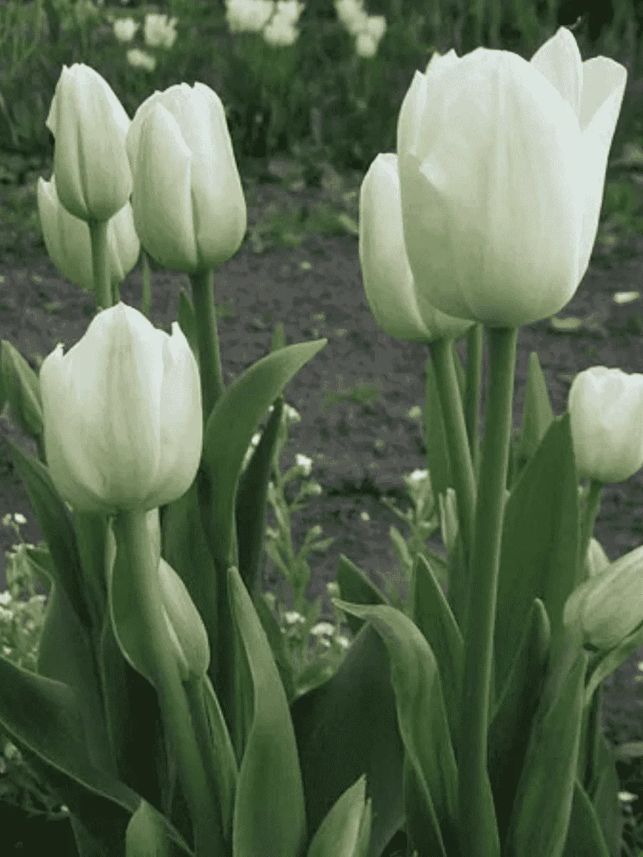Тюльпан **Weisse Berliner** пленяет взор своей изысканной простотой и благородством форм. Высокий стройный стебель венчается крупным одиночным цветком идеальной чашевидной формы, лепестки которого белоснежны, словно свежевыпавший снег, слегка отливающий перламутром при ярком свете солнца. Листья удлинённые, насыщенно-зелёные, гладкие и блестящие, подчёркивающие чистоту и нежность цветка. Цветёт растение поздно весной, раскрываясь навстречу тёплым лучам и наполняя сад утончённой элегантностью. Высота взрослого экземпляра достигает 65–70 см, благодаря чему тюльпан прекрасно смотрится в крупных композициях и срезке. Предпочитает солнечные места с плодородной рыхлой почвой, устойчив к холоду и неприхотлив в уходе. Этот сорт идеально подходит для украшения садов, парков и городских клумб, даря ощущение чистоты и гармонии природы.