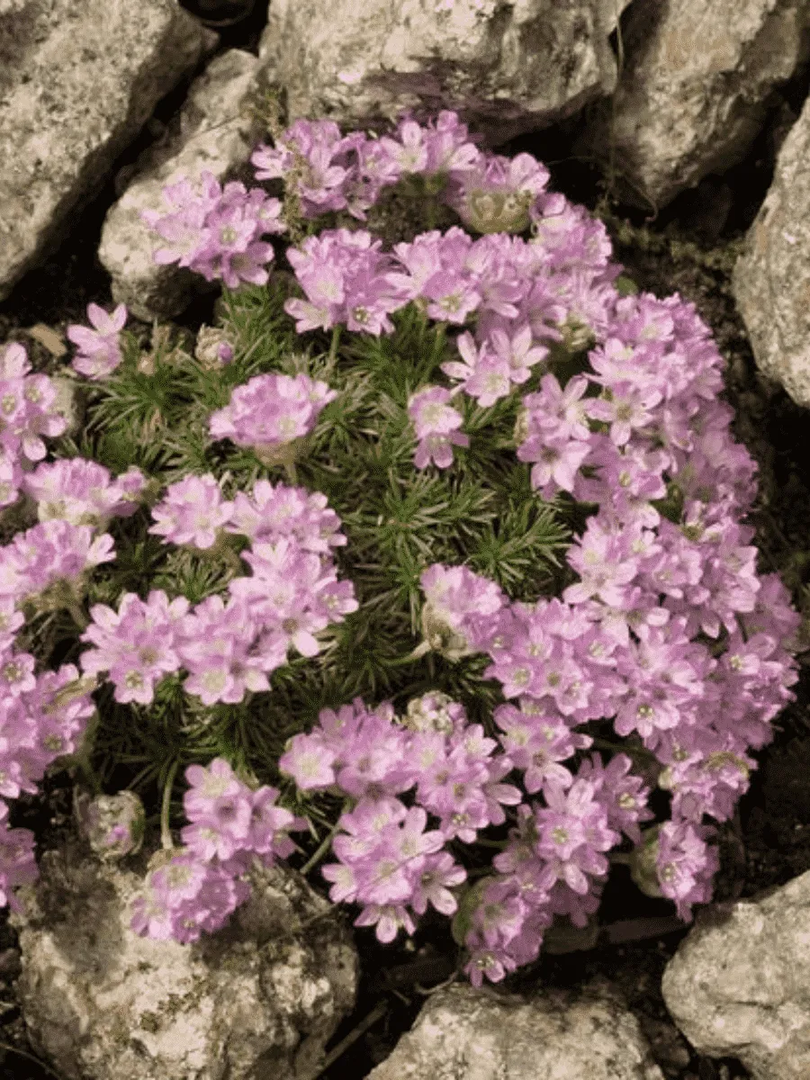 Армерия дернистая — очаровательное многолетнее растение семейства свинчатковых, покоряющее сердца садоводов своей неприхотливостью и нежной красотой. Образует плотную округлую подушку высотой до 15 см, состоящую из узких линейных листочков тёмно-зелёного цвета, слегка свернутых вдоль центральной жилки и покрытых тонким пушком, придающим растению бархатистый блеск. Цветёт обильно и продолжительно, начиная с конца мая и вплоть до сентября, покрываясь множеством мелких розовых цветков, собранных в компактные шаровидные соцветия диаметром около сантиметра каждый. Эти миниатюрные бутоны словно сотканы из тонких лепестков, переливающихся оттенками от нежно-розового до насыщенно-пурпурного, создавая впечатление кружевного облака над зелёной массой листвы. Растение предпочитает сухие песчаные почвы и солнечные места, легко переносит засуху и морозы, широко распространено в степях и полупустынях Европы и Азии, украшая собой каменистые склоны и прибрежные дюны.
