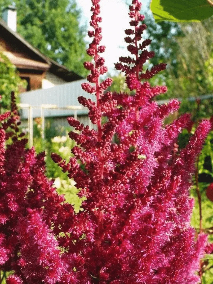 Астильба китайская сорта *Cardinal* пленяет взор роскошной листвой и пышным цветением, украшая тенистые уголки сада изысканной красотой. Её листья крупные, перисто-рассечённые, тёмно-зелёные, слегка блестящие, словно покрытые тонким слоем воскового блеска, придают растению благородную строгость и элегантность. Цветоносы устремляются вверх стройными свечами высотой до метра, увенчанные густыми метельчатыми соцветиями насыщенного карминно-красного оттенка, источающими тонкий аромат и привлекающими внимание своей величественной грациозностью. Растёт астильба быстро, формируя плотные кустики, легко разрастается, предпочитая влажные плодородные почвы и полутень, где раскрывает всю свою декоративную прелесть, создавая живописные композиции среди камней, вдоль водоёмов и в миксбордерах.
