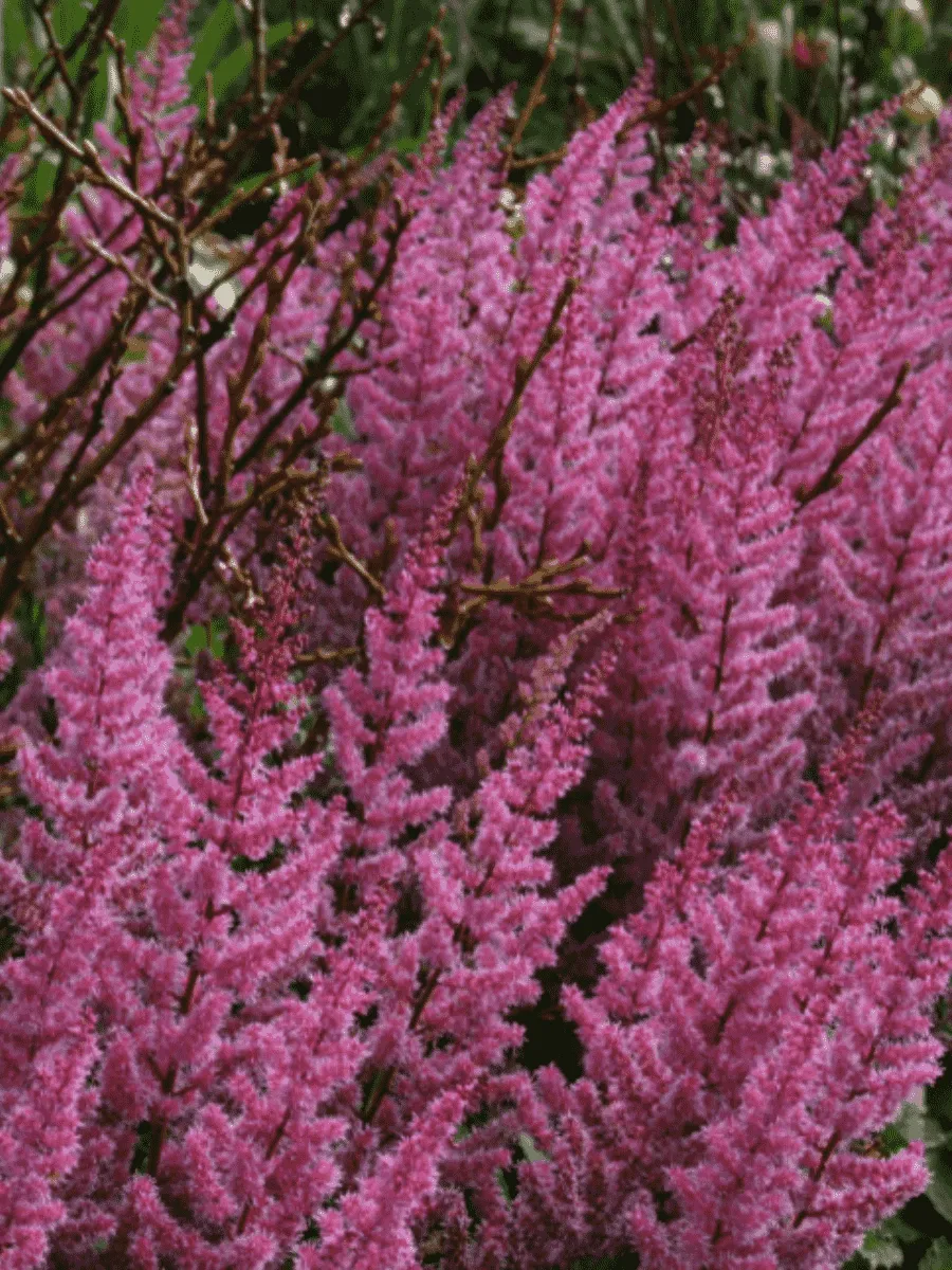 Астильба китайская *Veronica Klose* пленяет взор нежностью своего облика и утончённостью форм. Это многолетнее травянистое растение образует пышную куртину высотой до полуметра, украшенную крупными перисто-рассечёнными листьями насыщенного зелёного цвета с волнистыми краями, придающими растению особую воздушность и лёгкость. Цветёт астильба обильно и продолжительно, начиная с середины лета и заканчивая первыми осенними заморозками. Её соцветия-метёлки возвышаются над листвой подобно пушистым облачкам, окрашиваясь в изысканные оттенки розового, переходящего в пурпурный тон. Растение предпочитает тенистые уголки сада, влажные почвы и хорошо переносит полутень, создавая живописные композиции вдоль берегов водоёмов, среди камней альпийских горок или в тени деревьев. Благодаря своей неприхотливости и декоративности, астильба стала незаменимым элементом ландшафтного дизайна, дарящим саду атмосферу спокойствия и гармонии.