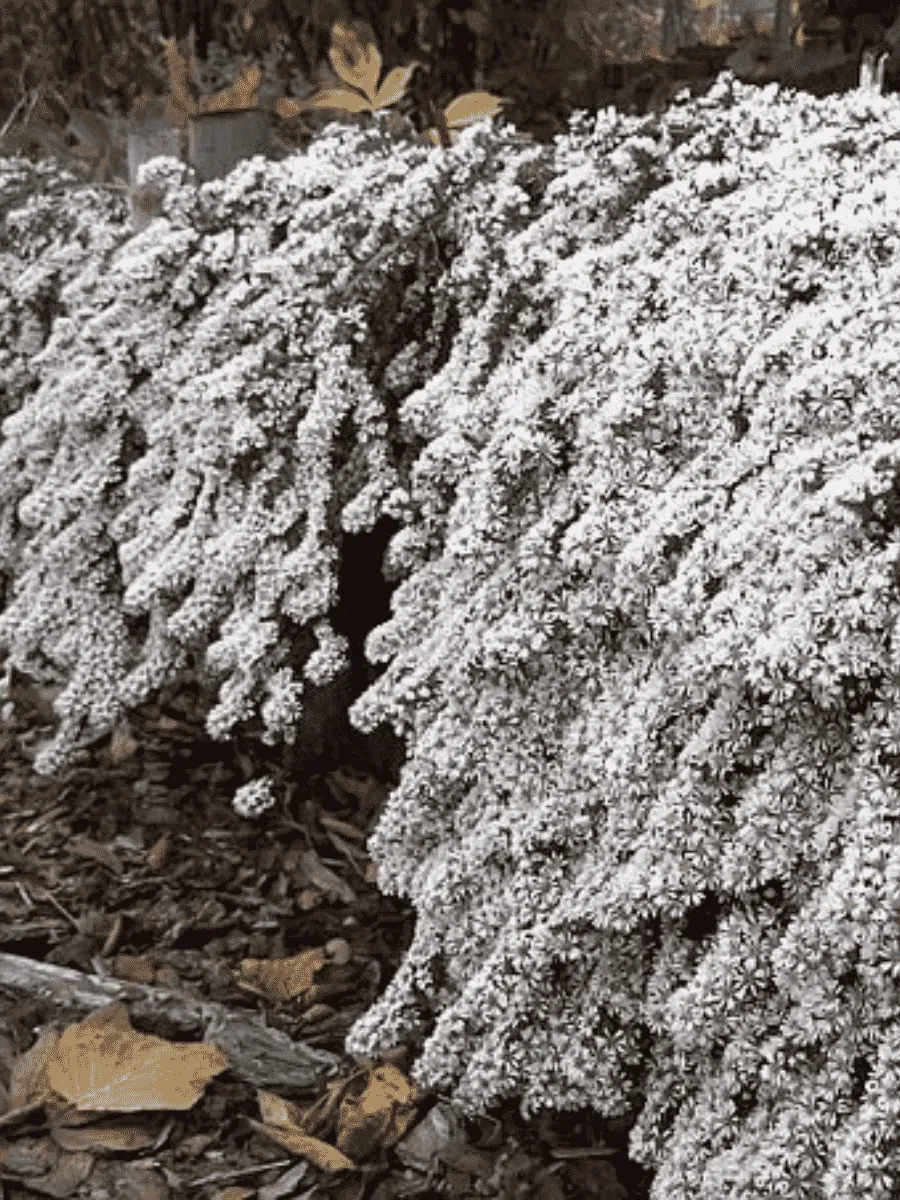 Астра вересковая сорта *Snow Flurry* пленяет взор нежностью своего облика и утончённостью форм. Это компактный многолетник высотой до полуметра, обладающий густой кроной из узких серебристо-зелёных листочков, словно покрытых тонким слоем утренней росы. Листья линейной формы, слегка загнутые вверх, придают растению особую воздушность и лёгкость. Цветёт обильно и продолжительно, начиная с конца лета и вплоть до первых заморозков, покрываясь множеством мелких соцветий-корзинок белоснежного оттенка, будто снежинки, застывшие среди зелени. Соцветия диаметром около двух сантиметров собраны в рыхлые щитки, создавая впечатление пушистого облака над аккуратным кустиком. Растение предпочитает солнечные места и хорошо дренированные почвы, легко адаптируется к различным условиям произрастания, украшая сады и парки своей изысканной простотой и элегантностью.