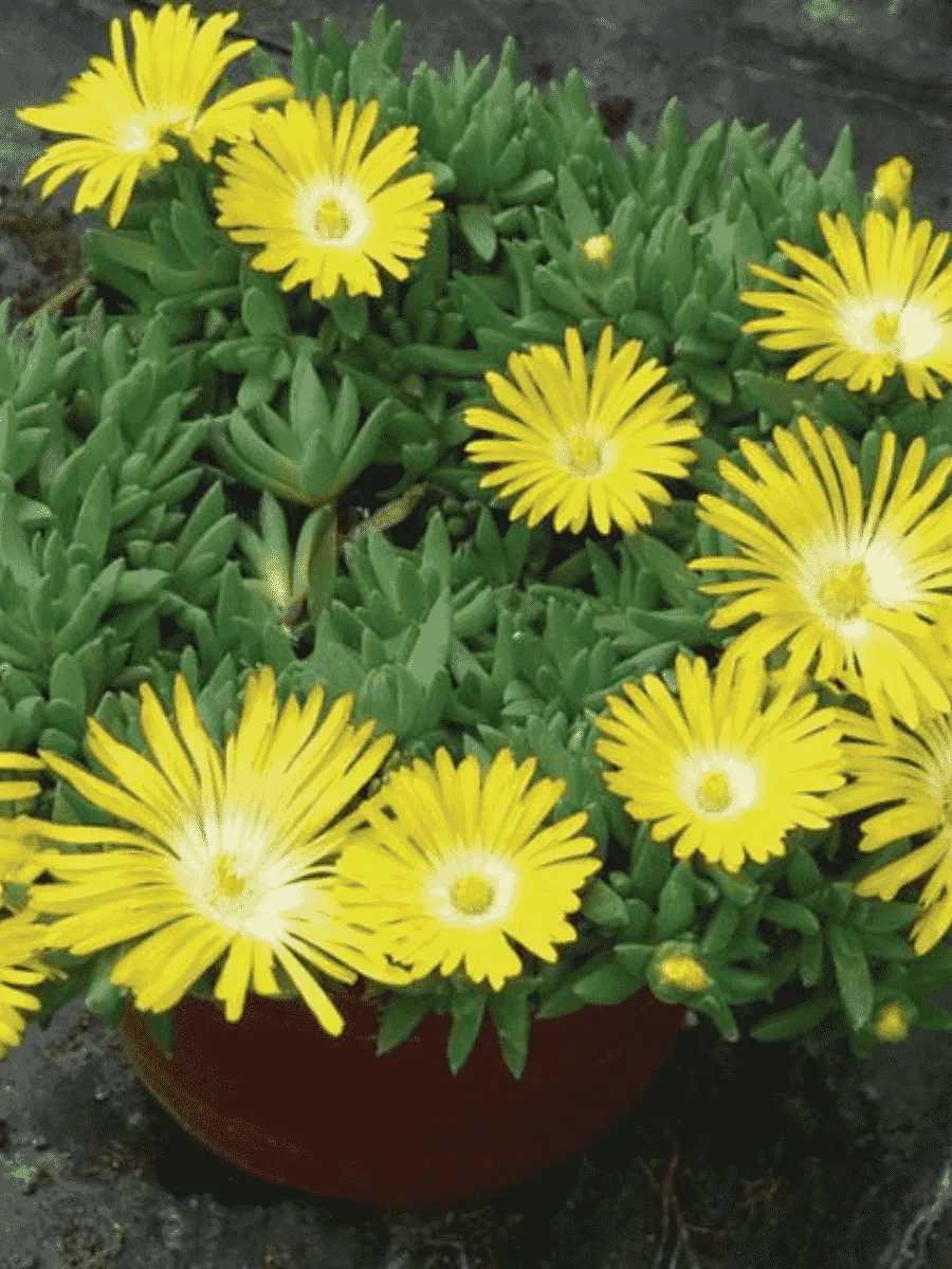 Делосперма скрученная *Golden Nugget* — миниатюрная суккулентная культура, покоряющая сердца садоводов своей изысканной простотой и нежностью форм. Это компактное растение образует плотную ковровую куртину высотой всего несколько сантиметров, состоящую из мелких мясистых листочков изумрудной окраски, слегка закручивающихся по краям и придающих растению особую декоративность даже вне периода цветения. Но истинное великолепие раскрывается летом, когда поверхность покрывают многочисленные яркие золотисто-жёлтые звёздочки цветков диаметром около сантиметра, сияющие среди зелени подобно драгоценностям, рассыпанным по бархату. Цветение продолжается долго, украшая садовые композиции и альпийские горки до самой осени. Растёт быстро, легко разрастаясь и заполняя пространство между камнями или плиткой мощёных дорожек, создавая эффект естественного природного покрытия. Благодаря неприхотливости и устойчивости к засухе, эта очаровательная красавица прекрасно подходит для выращивания в каменистых садах, контейнерах и балконных композициях, радуя глаз своим солнечным обликом долгие месяцы.