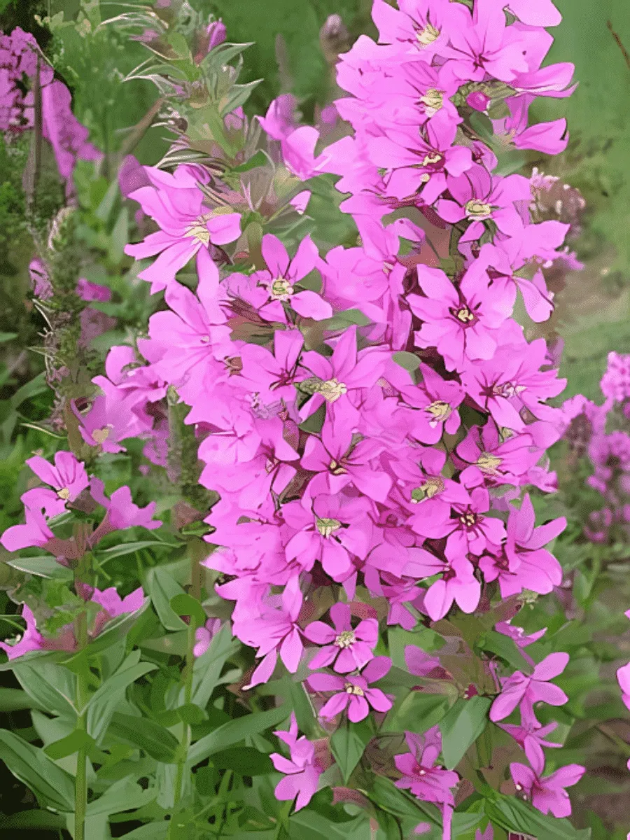 Дербенник иволистный сорта **Rosy Gem** пленяет взор нежностью своего облика и утончённостью форм. Это многолетнее травянистое растение достигает высоты около полуметра, обладая прямостоячими стеблями, покрытыми узкими продолговатыми листьями насыщенного зелёного цвета, слегка блестящими от воскового налёта. Листья расположены очередно вдоль всего стебля, придавая растению стройность и лёгкость. Цветёт дербенник обильно и продолжительно, начиная с середины лета до первых осенних холодов. Его соцветия представляют собой плотные колосовидные кисти, состоящие из множества мелких цветков нежно-розовых оттенков, словно жемчужины, переливающиеся на солнце. Благодаря компактности куста и яркости цветения сорт идеально подходит для оформления бордюров, миксбордеров и прибрежных зон водоёмов, где он эффектно подчёркивает красоту окружающего ландшафта.