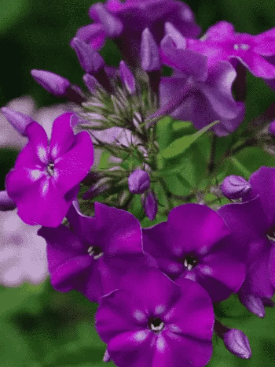 Флокс метельчатый сорта **«Ночь в горах»** пленяет взор своей изысканной красотой и утончённостью форм. Это многолетнее травянистое растение образует пышную кустистую крону высотой около метра, украшенную тёмно-зелёной листвой насыщенного оттенка, слегка блестящей от солнечного света. Листья продолговатые, гладкие, расположены супротивно вдоль стебля, создавая гармоничный фон для роскошного цветения. Цветки крупные, диаметром до трёх сантиметров, собраны в густые пирамидальные соцветия-метёлки, возвышающиеся над листьями подобно сказочным свечкам. Окраска цветков глубокая, бархатисто-фиолетовая, почти чёрная, словно отражающая таинственную ночь высокогорных вершин. Период цветения продолжительный, начинается в июне и длится до конца августа, наполняя сад нежным ароматом и притягивая внимание своим величественным обликом. Растёт флокс быстро, легко размножается делением куста и черенкованием, прекрасно адаптируется к различным почвенным условиям, предпочитая солнечные места и умеренный полив.
