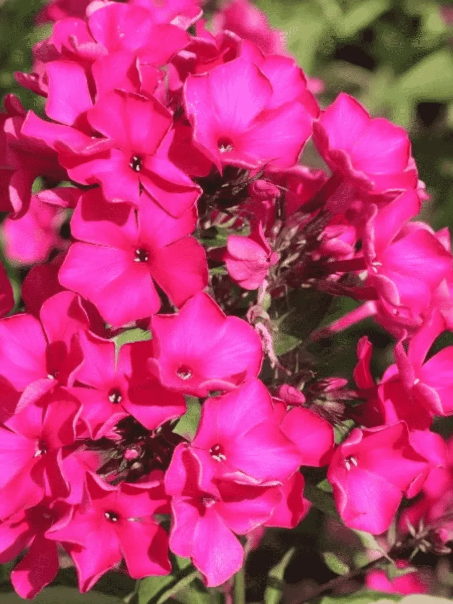 Флокс метельчатый сорта *Пламя* представляет собой многолетнее травянистое растение с прямостоячими крепкими стеблями высотой до одного метра, густо покрытыми тёмно-зелёной листвой насыщенного оттенка. Листья ланцетные, гладкие, блестящие, слегка волнистые по краям, придающие растению элегантность и благородство облика. Цветки собраны в пышные крупные соцветия-метёлки, достигающие диаметра около двадцати сантиметров, состоящие из множества трубчатых цветков ярко-красного цвета с лёгким оранжевым оттенком, словно языки пламени, горящего среди зелени сада. Период цветения продолжительный, начинается в июне и продолжается вплоть до сентября, наполняя сад ароматом сладковатых ноток ванили и специй. Растёт быстро, легко размножается делением куста и черенкованием, предпочитает солнечные места с плодородной рыхлой почвой, устойчив к засухе и болезням, прекрасно подходит для оформления клумб, миксбордеров и бордюров, создавая яркие акценты и привлекая внимание своей роскошью и декоративностью.