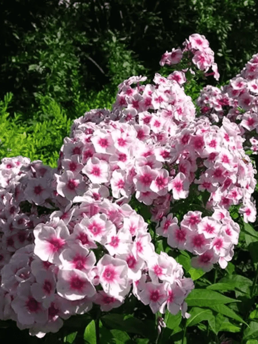 Флокс метельчатый сорта 'Румяный' пленяет взор нежностью своего облика и изысканностью форм. Это многолетнее травянистое растение образует пышную кустистую крону высотой до полуметра, украшенную крупными тёмно-зелёными листьями ланцетной формы с гладкой поверхностью и слегка волнистыми краями. Цветёт обильно и продолжительно, начиная с июня и вплоть до сентября, покрываясь многочисленными соцветиями-метёлками, состоящими из множества мелких цветков нежно-розового оттенка с едва заметным пурпурным румянцем в центре лепестков. Аромат цветов тонкий, приятный, привлекающий насекомых-опылителей. Растение предпочитает солнечные места, хорошо дренированные почвы и умеренный полив, легко размножается делением куста и черенкованием, широко используется в ландшафтном дизайне благодаря своей декоративности и неприхотливости.