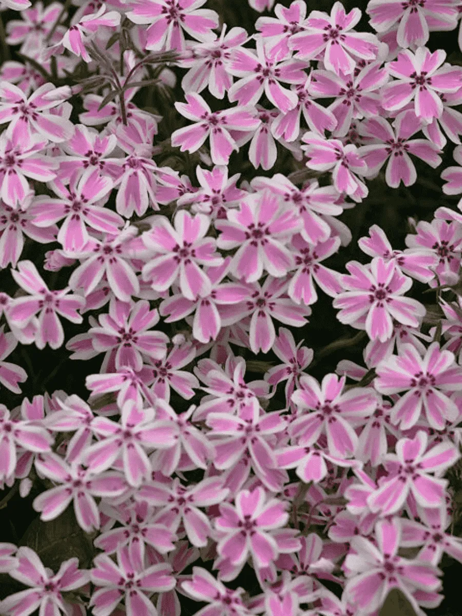 Флокс шиловидный сорта *Candy Stripes* пленяет взор нежностью своего цветения и утончённостью облика. Это многолетнее травянистое растение образует плотную зелёную куртину высотой до 15 см, украшенную узкими линейными листьями насыщенного изумрудного оттенка, словно иглы миниатюрной ёлочки. Цветки распускаются ранней весной, покрывая кустики яркими звёздочками диаметром около 2–3 см, чьи лепестки окрашены в бело-розовую полоску, создавая эффект праздничного конфетти. Соцветия располагаются густо, превращая каждый стебель в живописный букетик. Растёт быстро, легко разрастается, предпочитая солнечные места и лёгкую плодородную почву, идеально подходит для оформления альпийских горок, бордюров и каменистых садов, где демонстрирует свою природную красоту и очарование.