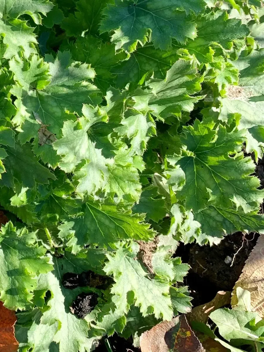 Гейхера сорта *Malachite* пленяет взор изысканным сочетанием изумрудной зелени и нежнейшего серебристого напыления на листьях, словно покрытых тонким слоем драгоценного малахита. Листья крупные, сердцевидные, слегка волнистые по краям, образуют пышную розетку, радующую глаз своей декоративностью весь сезон. Цветоносы возвышаются над листвой стройными свечками, украшенными мелкими цветами нежно-розового оттенка, собранными в рыхлые метельчатые соцветия. Растение предпочитает полутень и умеренно влажные почвы, прекрасно адаптируется к различным условиям произрастания, демонстрируя свою неприхотливость и устойчивость к болезням. Благодаря компактному росту и длительному периоду цветения гейхеру *Malachite* часто используют в ландшафтном дизайне для оформления бордюров, миксбордеров и рокариев, где она эффектно подчеркивает красоту окружающих растений своим элегантным обликом и благородством окраски.