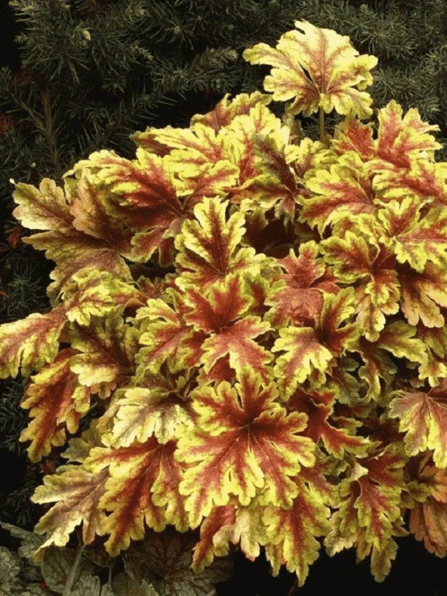 Гейхерелла 'Golden Zebra' пленяет взор своей изысканной декоративностью и утончённой красотой. Это многолетнее растение образует компактную розетку крупных сердцевидных листьев, украшенных контрастной золотисто-жёлтой каймой и ярко-зелёными прожилками, словно солнечный лучик застыл на поверхности каждого листочка. Листья слегка волнистые, бархатистые на ощупь, придают растению особую нежность и воздушность. Цветоносы возвышаются над лиственной массой, увенчанные мелкими соцветиями нежно-розовых цветков, придающих гейхерелле особое очарование во время цветения. Растёт медленно, формируя плотные куртины, устойчива к неблагоприятным условиям среды, прекрасно переносит полутень и умеренно влажные почвы. Благодаря своему элегантному облику и неприхотливости, она становится украшением любого сада, привнося гармонию и природную красоту в ландшафтный дизайн.