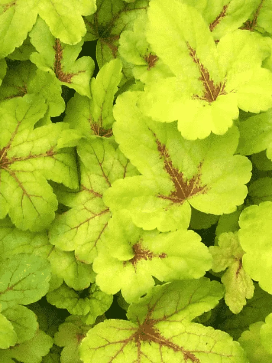 Гейхерелла 'Sunspot' пленяет взор своей изысканной декоративностью и удивительной игрой красок. Это компактное растение высотой около 15–20 см образует плотную куртинку густо расположенных сердцевидных листьев, украшенных контрастной золотисто-жёлтой каймой и ярко-зелёной центральной частью. Листья слегка гофрированные, бархатистые на ощупь, словно покрытые нежнейшей пудрой, придают растению особую утончённость и элегантность. Цветоносы возвышаются над листвой, увенчанные мелкими розово-красными цветами, собранными в рыхлые метельчатые соцветия, создавая эффект воздушности и лёгкости. Растёт гейхерелла медленно, постепенно разрастаясь и формируя живописные группы, прекрасно вписываясь в тенистые уголки сада, рокарии и альпийские горки, где её яркая зелень становится настоящим украшением даже после окончания цветения.