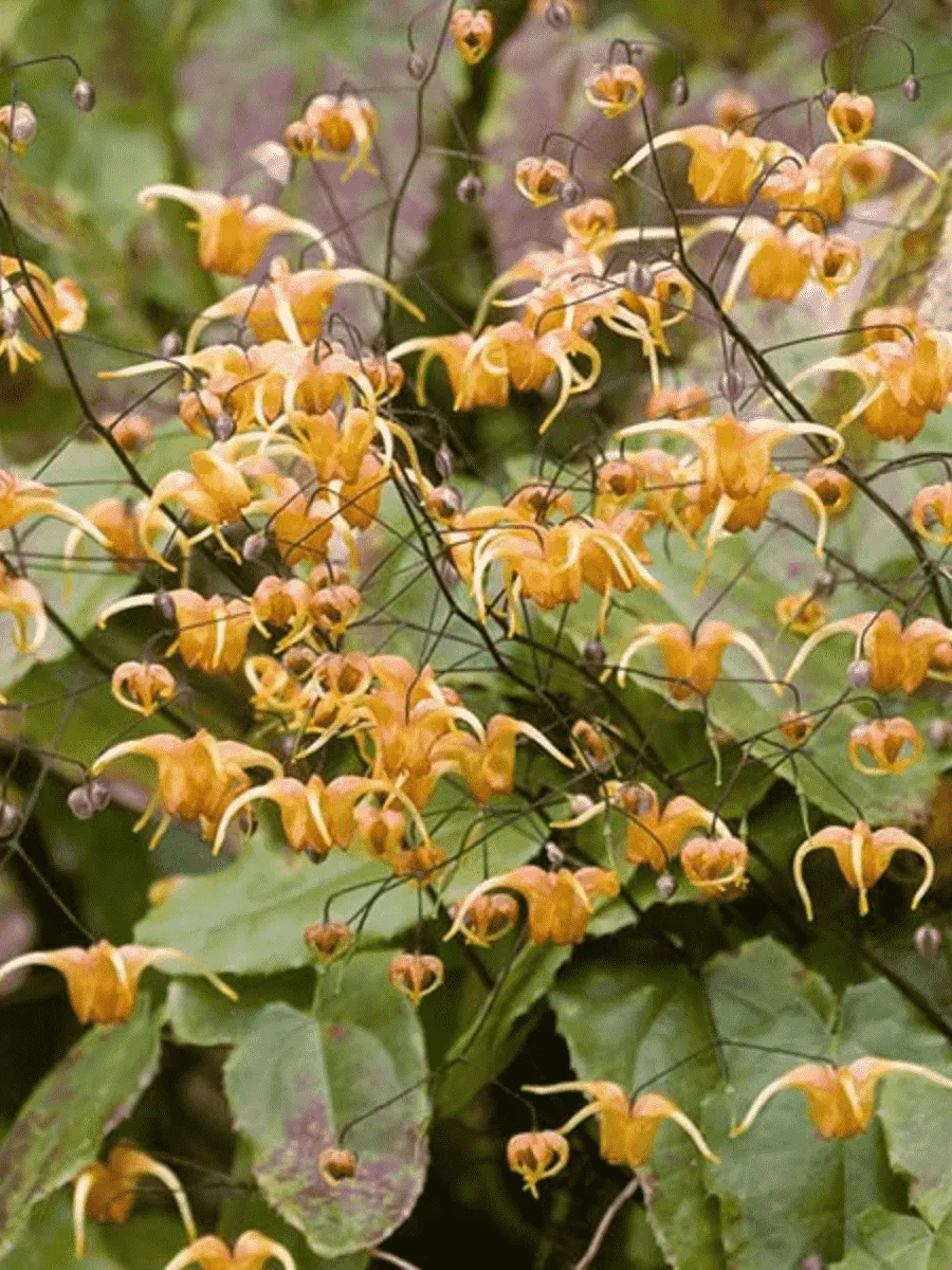 Горянка сортовая *Amber Queen* пленяет взор нежностью золотисто-зелёной листвы, переливающейся оттенками от лимонного до янтарного цвета. Листья сердцевидные, слегка волнистые по краям, словно кружевная манжета, создают живописную мозаику оттенков, меняющихся в зависимости от освещения и сезона. Цветки мелкие, бело-кремовые, собраны в рыхлые кистевидные соцветия, возвышающиеся над листьями подобно свечкам, источающим тонкий аромат. Растёт горянка быстро, формируя пышные куртины высотой около 15–25 см, предпочитая влажные тенистые места, где её листья приобретают особую яркость и сочность. Этот декоративный многолетник идеально подходит для оформления берегов водоёмов, рокариев и затенённых уголков сада, привнося туда атмосферу спокойствия и гармонии природы.