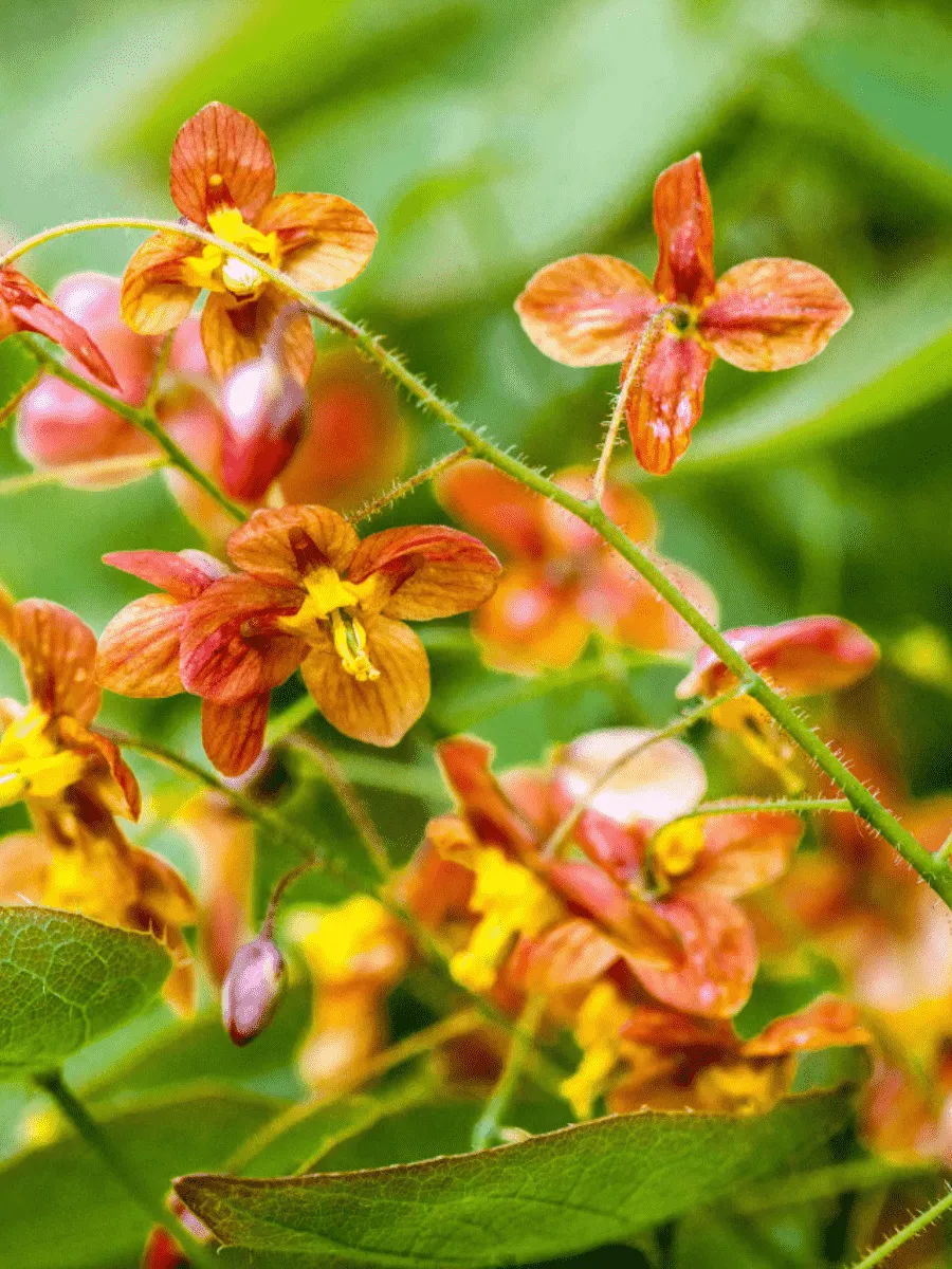 Горянка сортовая *Orange Queen* пленяет взор своей изысканной красотой и нежностью форм. Это многолетнее травянистое растение образует компактную розетку крупных сердцевидных листьев насыщенного зелёного цвета с ярко выраженными жилками, придающими листовым пластинам особую декоративность. Листья слегка блестящие, гладкие, словно покрытые тонким слоем воска, создают впечатление свежести и здоровья. Цветки горянки поражают воображение своим ярким оранжевым оттенком, который варьируется от золотисто-оранжевого до медово-красноватого, создавая эффект солнечного сияния среди зелени сада. Они собраны в рыхлые кистевидные соцветия, возвышающиеся над листвой на длинных прочных цветоносах высотой около 45–60 см. Период цветения продолжительный, начинается ранней весной и длится несколько недель, наполняя сад теплом и светом. Растёт быстро, предпочитает влажные плодородные почвы и полутень, легко адаптируется к различным условиям произрастания, становясь украшением тенистых уголков садов и парков.