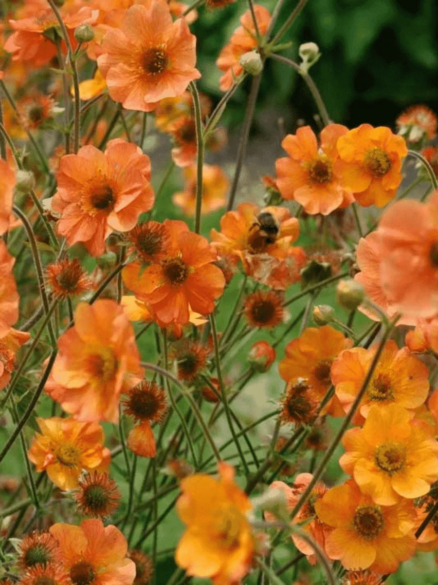 Гравилат чилийский сорта *Totally Tangerine* пленяет взор своей изысканной красотой и утончённостью форм. Это компактный многолетник высотой около полуметра, обладающий прямостоячими стеблями, покрытыми крупными листьями насыщенно-зелёной окраски с характерным блеском и слегка волнистым краем. Листья имеют пальчато-рассечённую структуру, создавая впечатление ажурной кружевной ткани, украшающей растение от основания до верхушки. Цветки собраны в пышные зонтичные соцветия, возвышаются над листвой подобно ярким факелам, источающим тонкий аромат. Лепестки цветков окрашены в нежную оранжево-красную гамму, плавно переходящую от светлых оттенков у основания к глубоким тонам ближе к краям лепестков, словно художник бережно смешал краски палитры природы. Период цветения продолжительный, начинается поздней весной и длится всё лето, наполняя сад яркими красками и привлекая внимание насекомых-опылителей. Растёт гравилат быстро, легко адаптируется к различным условиям выращивания, предпочитая солнечные места и плодородные почвы, распространяя вокруг себя атмосферу тепла и радости.