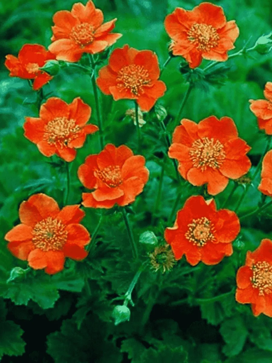 Гравилат ярко-красный сорта *Tosai* пленяет взор изысканным сочетанием благородной зелени и пламенных оттенков цветения. Его компактная форма представляет собой живописную куртинку высотой около тридцати сантиметров, украшенную плотными листьями насыщенного изумрудного цвета, слегка волнистыми по краям и покрытыми нежным восковым налетом. Цветки гравилата поражают своей интенсивностью красок: крупные бутоны раскрываются в яркие звезды глубокого рубинового оттенка, словно искры огня среди густой листвы. Период цветения длится долго, начиная с конца весны до середины лета, наполняя сад неповторимым очарованием экзотической красоты. Растение предпочитает солнечные места, хорошо дренированные почвы и умеренный полив, легко адаптируясь к различным условиям выращивания и становясь украшением каменистых садов, альпинариев и миксбордеров.