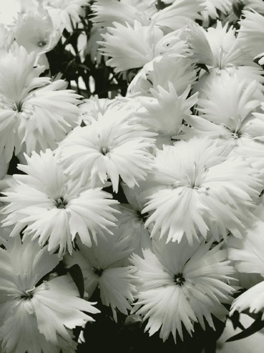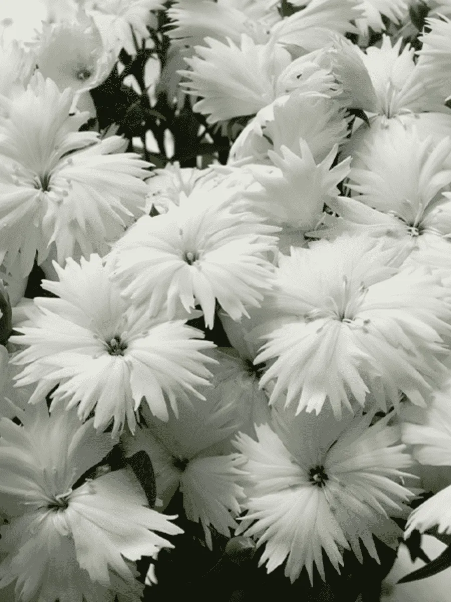 Гвоздика китайская *Diana White* пленяет взор своей изысканной простотой и нежностью форм. Это травянистое растение высотой около полуметра обладает прямостоячими крепкими стеблями, покрытыми узкими линейными листьями насыщенного зелёного цвета, словно вырезанными тонкой кистью мастера. Листья расположены супротивно, создавая гармоничную симметрию и подчёркивая стройность облика гвоздики. Цветёт она обильно и продолжительно, раскрывая крупные белые цветки диаметром до пяти сантиметров, собранные в рыхлые соцветия-зонтики. Лепестки цветков слегка гофрированные, будто кружевная ткань, придают особую воздушность и утончённость всему растению. Аромат цветов тонкий, едва уловимый, наполняющий пространство лёгким благоуханием. Гвоздика предпочитает солнечные места и плодородные почвы, легко размножается семенами и черенкованием, быстро разрастаясь и формируя живописные куртины, украшающие сады и парки своим благородством и элегантной красотой.