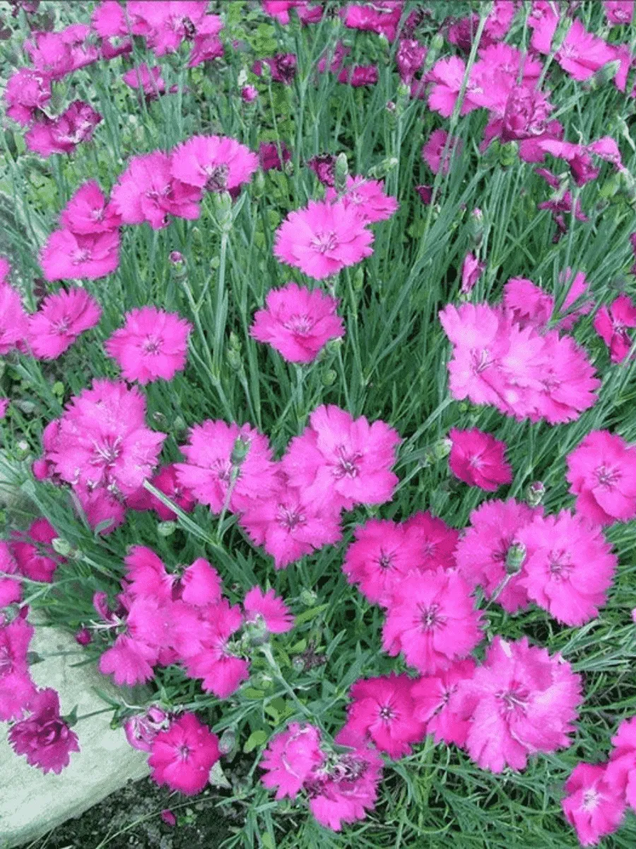 Гвоздика перистая сорта *Whatfield Magenta* пленяет взор нежностью своего облика и утончённостью форм. Это многолетнее травянистое растение отличается компактной кустистой формой, достигающей высоты около полуметра. Листья узколанцетные, светло-зелёные, слегка сизые от воскового налёта, придают растению лёгкость и воздушность. Цветки собраны в рыхлые соцветия, распускаются постепенно, создавая эффект непрерывности цветения. Лепестки нежно-рассечённые, волнистые, словно кружевная ткань, окрашены в насыщенный пурпурно-малиновый оттенок с едва заметным серебристым напылением по краям. Бутоны раскрываются медленно, демонстрируя градацию оттенков от тёмно-фиолетовых до розово-палевых, придавая саду особую живописную палитру. Растёт гвоздика быстро, легко размножается делением куста и семенами, предпочитая солнечные места и плодородные почвы, украшая собой клумбы, бордюры и миксбордеры своей изысканной красотой и ароматом.
