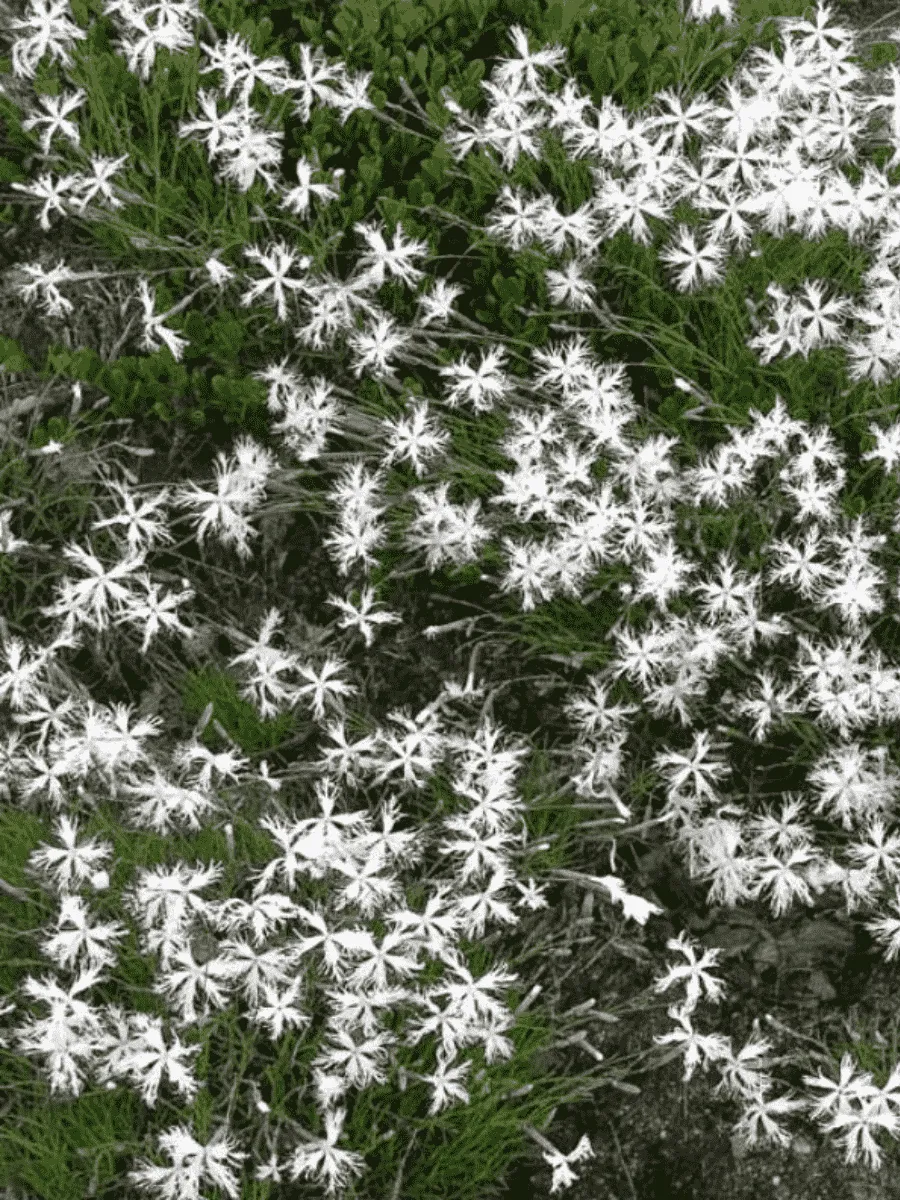 Гвоздика песчаная *Little Maiden* пленяет взор нежностью миниатюрных розово-сиреневых цветков, собранных в аккуратные соцветия над компактной куртинкой серебристо-зелёных узких листочков. Листья тонкие, игольчатые, покрыты лёгким восковым налётом, придающим растению особую декоративность даже вне периода цветения. Цветки мелкие, диаметром около сантиметра, раскрываются постепенно, создавая эффект непрерывности цветения с конца мая до середины июля. Высота кустика редко превышает десять сантиметров, благодаря чему растение идеально подходит для оформления альпийских горок, рокариев и бордюров. Предпочитает солнечные участки с рыхлыми песчаными почвами, легко переносит засуху и морозы, сохраняя свежесть облика даже после суровых зим.