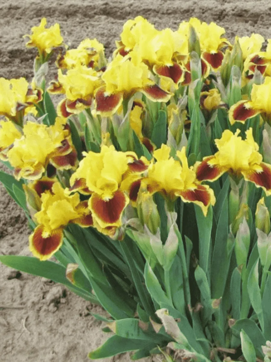Ирис карликовый Splash of Red — миниатюрная жемчужина среди садовых растений, покоряющая сердца садоводов нежностью форм и яркостью красок. Его узкие, слегка дугообразно изгибающиеся листья напоминают тонкие зелёные ленты, мягко струящиеся над поверхностью земли. Цветки раскрываются ранней весной, словно маленькие алые звёзды, вспыхивающие ярким светом на фоне молодой зелени. Лепестки окрашены насыщенным красным цветом с лёгким пурпурным оттенком, создавая впечатление искрящегося пламени. Сердцевинка цветка украшена контрастной жёлтой полосой, придающей особую изысканность общему облику. Растёт компактно, формируя аккуратную куртину высотой всего около 15-20 см, идеально подходящую для рокариев, бордюров и контейнерных посадок. Этот сорт отличается неприхотливостью и устойчивостью к неблагоприятным условиям, радуя глаз своим декоративным видом долгие годы подряд.