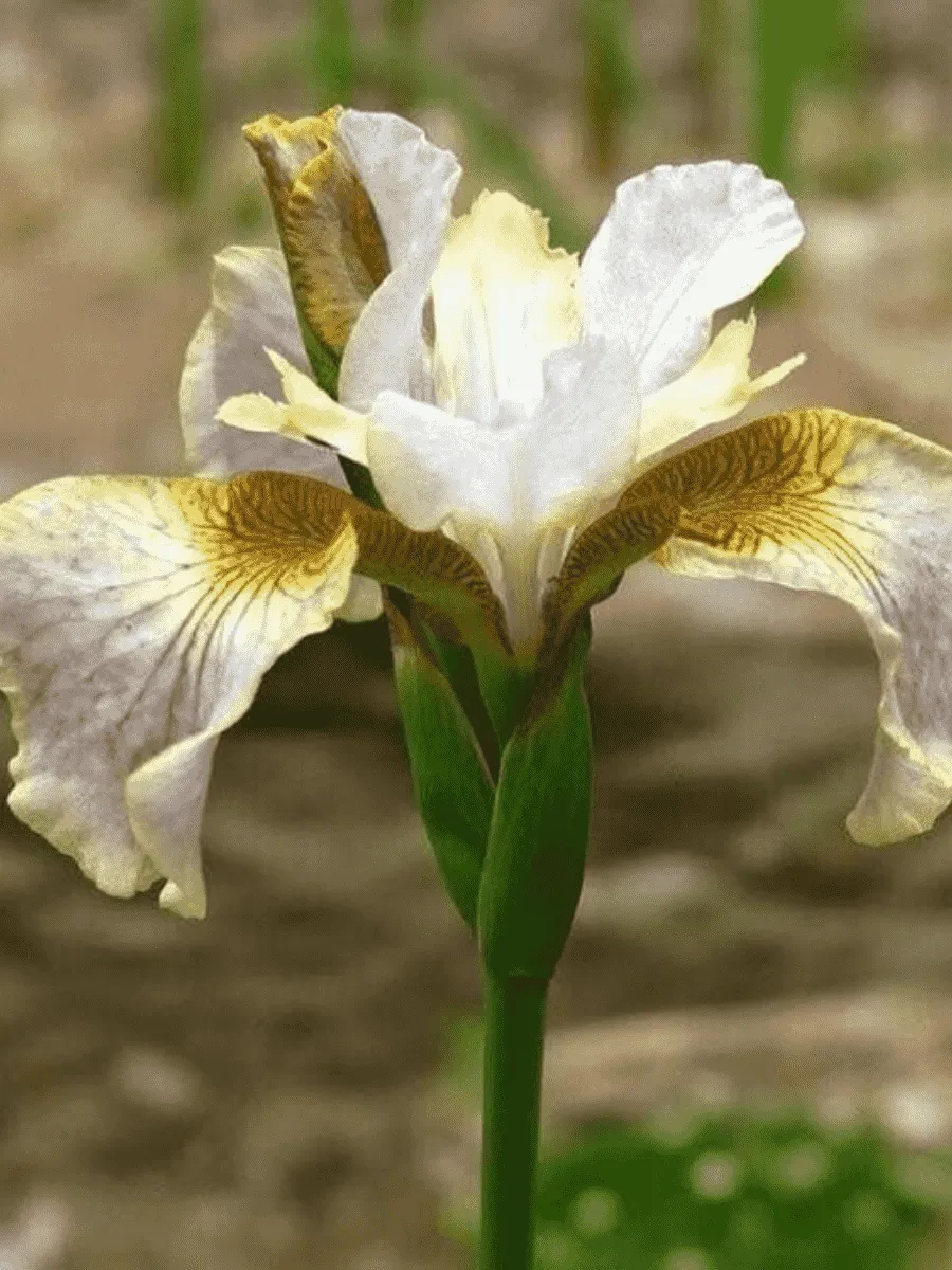 Ирис сибирский 'Sarah Tiffney' пленяет взор изысканным обликом и благородной простотой форм. Его узколинейные листья, словно зелёные клинки, устремлены вверх, создавая стройную вертикальную композицию высотой до полуметра. Цветоносы возвышаются над листвой, увенчанные крупными цветами диаметром около восьми сантиметров, раскрывающимися в июне-июле. Лепестки цветков нежно-голубого оттенка украшены серебристо-белым центром и тонкими фиолетовыми прожилками, придающими особую утончённость общему виду. Растение предпочитает солнечные места, легко адаптируется к различным почвенным условиям и отличается устойчивостью к холоду, позволяя широко использовать его в ландшафтном дизайне северных регионов России.