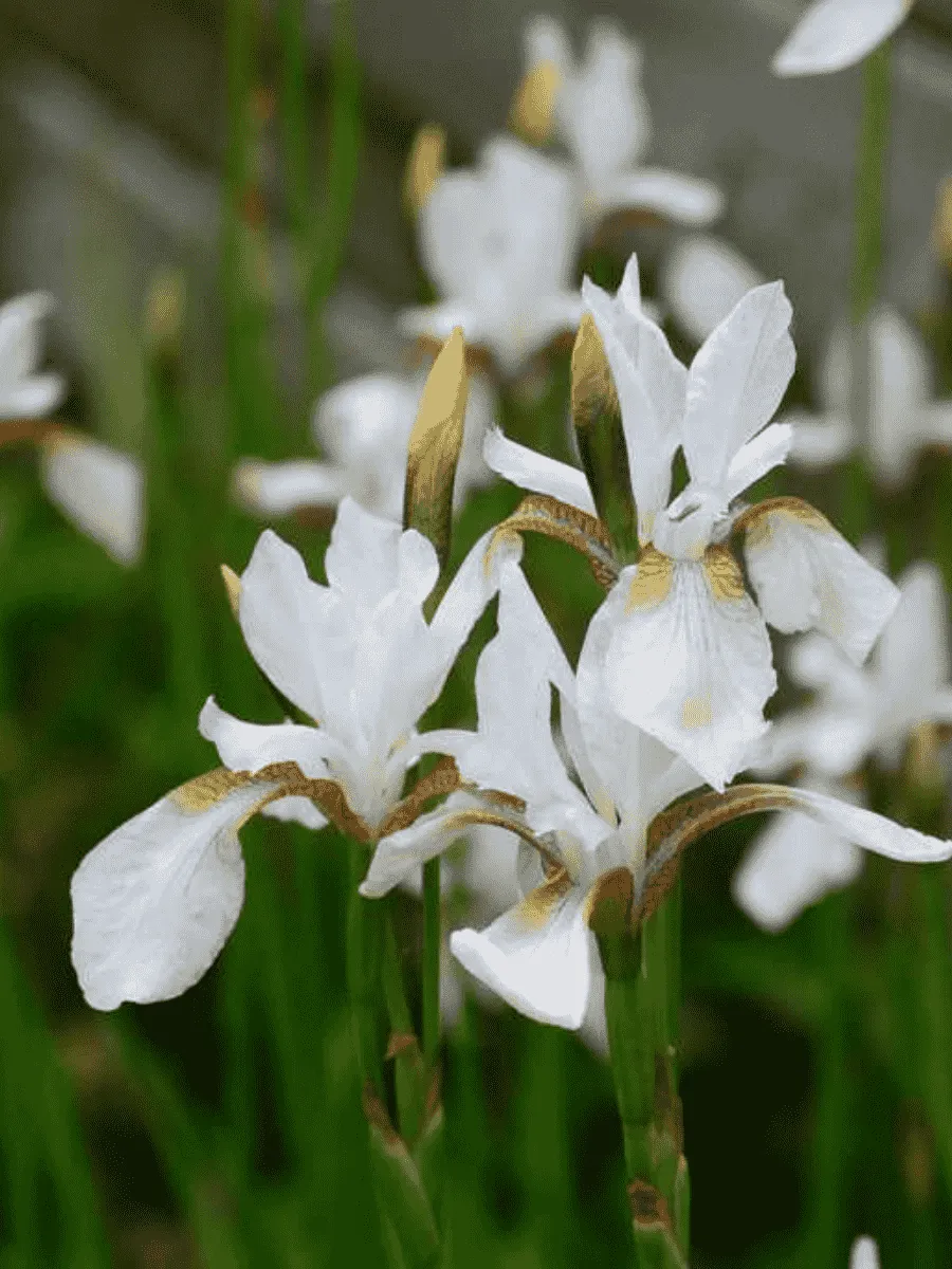 Ирис сибирский 'Snow Prince' пленяет своей изысканной простотой и благородством линий. Это многолетнее травянистое растение образует плотную куртину узких мечевидных листьев насыщенного зелёного цвета, устремлённых вверх подобно тонким клинкам мечей древних воинов. Листья гладкие, блестящие, слегка волнистые по краям, подчёркивая строгий силуэт цветка. Цветоносы стройные, высокие, достигают до полуметра в длину, несут крупные одиночные цветки идеальной формы, словно вырезанные искусной рукой мастера. Лепестки снежно-белые, бархатисто-матовые, с едва заметным голубым оттенком у основания нижних долей, придающим особую нежность и воздушность соцветию. Сердцевина цветка украшена золотистыми нитями тычинок и пурпурными рыльцами пестика, контрастирующими с белизной лепестков. Период цветения приходится на июнь-июль, когда многочисленные бутоны раскрываются один за другим, наполняя сад ароматом свежести и чистоты. Растёт быстро, неприхотлив, предпочитает солнечные места и умеренно влажные почвы, легко размножается делением корневищ и прекрасно зимует даже в суровых климатических условиях средней полосы России.