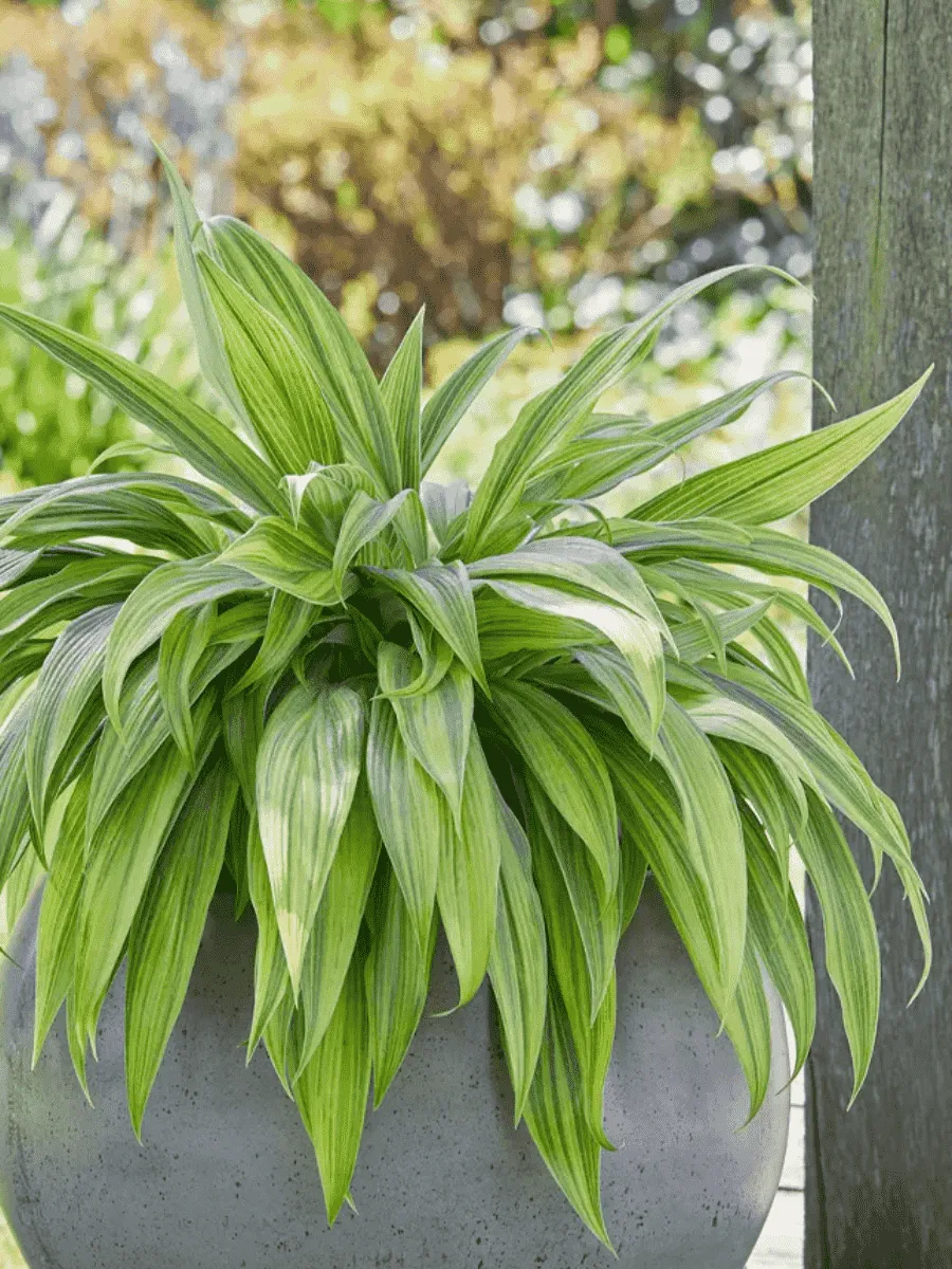 Хоста *Hyuga Urajiro* пленяет взор изысканной игрой оттенков зелёного и серебристого цветов, словно отражающих свет утренней росы. Её крупные листья овальной формы украшены нежной белой каймой и мерцающим серебристым напылением, придающим растению особую элегантность и утончённость. Листья плотные, слегка волнистые по краям, создают живописную композицию, подчёркивая природную гармонию форм и красок. Цветоносы возвышаются над лиственной массой, украшая садовые композиции небольшими светло-фиолетовыми цветами колокольчатой формы, источающими тонкий аромат. Растёт медленно, формируя компактные кустики высотой до полуметра, идеально подходящие для тенистых уголков сада, где она раскрывается во всей своей красоте, создавая атмосферу спокойствия и гармонии.