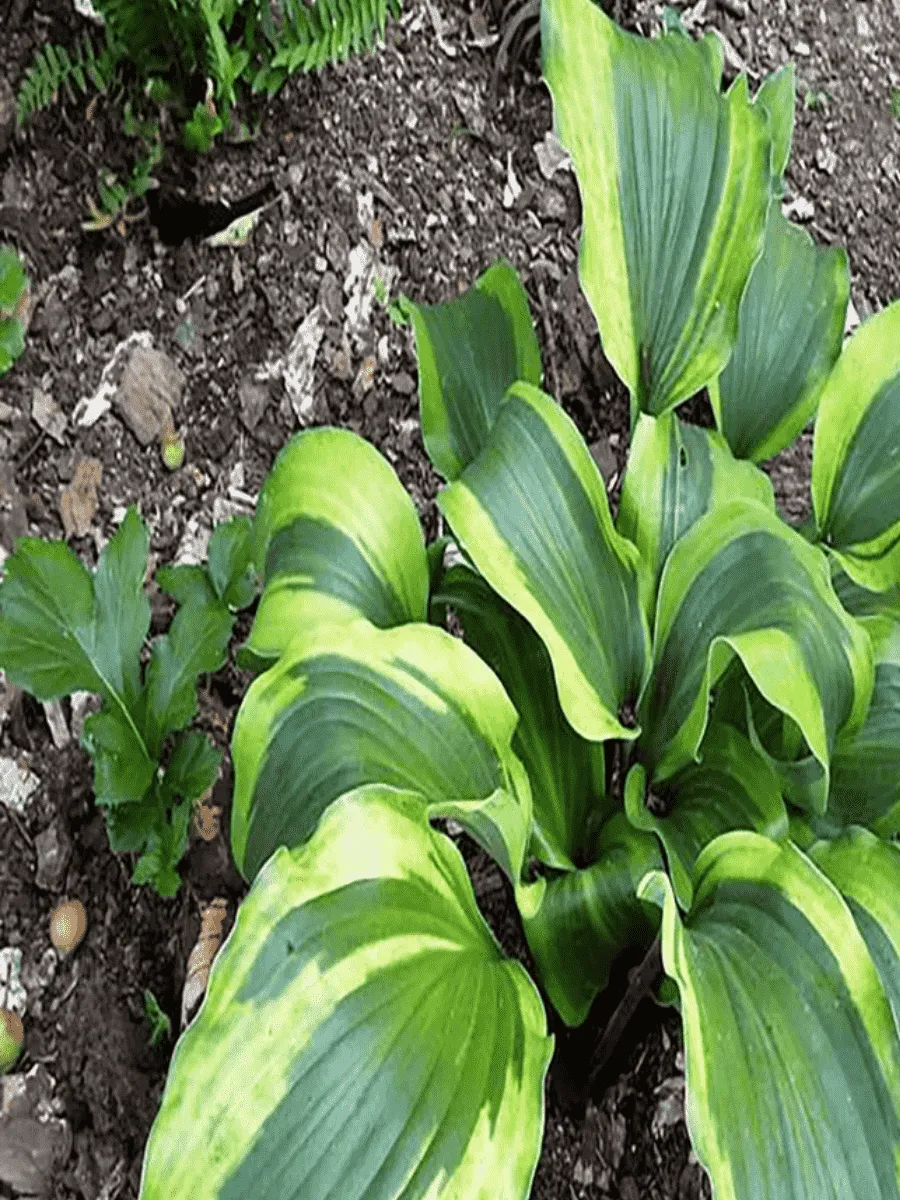 Хоста *Monkey Business* пленяет взор своей изысканной декоративностью и элегантной простотой форм. Листья крупные, сердцевидные, слегка волнистые по краям, словно бережно вырезанные искусным мастером, имеют насыщенный зелёный фон с широкой кремово-жёлтой каймой, придающей растению особую живописность и контрастность. Поверхность листовых пластин гладкая, глянцевитая, отражающая солнечные лучи нежными бликами. Цветоносы возвышаются над лиственной массой, украшая растение мелкими светло-фиолетовыми колокольчиками, источающими тонкий аромат, привлекающий насекомых-опылителей. Компактная форма куста позволяет использовать хосту в качестве эффектного акцента в тенистых уголках сада, где она прекрасно сочетается с другими растениями, подчёркивая свою индивидуальность и создавая атмосферу спокойствия и гармонии.