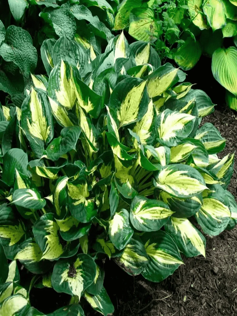 Хоста *Revolution* пленяет взор своей изысканной красотой и элегантностью форм. Листья крупные, сердцевидные, слегка волнистые по краям, словно бережно вырезанные рукой искусного мастера. Их поверхность покрыта нежной серебристо-голубоватой дымкой, контрастирующей с ярко-зелёными жилками, придающими растению особую декоративность и утончённость. Цветки собраны в рыхлые кисти, возвышающиеся над листвой на стройных цветоносах высотой до полуметра. Они окрашены в нежно-фиолетовый оттенок, источают тонкий аромат и радуют глаз своим появлением в середине лета. Растение предпочитает полутень и влажную плодородную почву, прекрасно адаптируется к условиям средней полосы России, украшая тенистые уголки садов и парков своими живописными листьями и воздушными соцветиями.