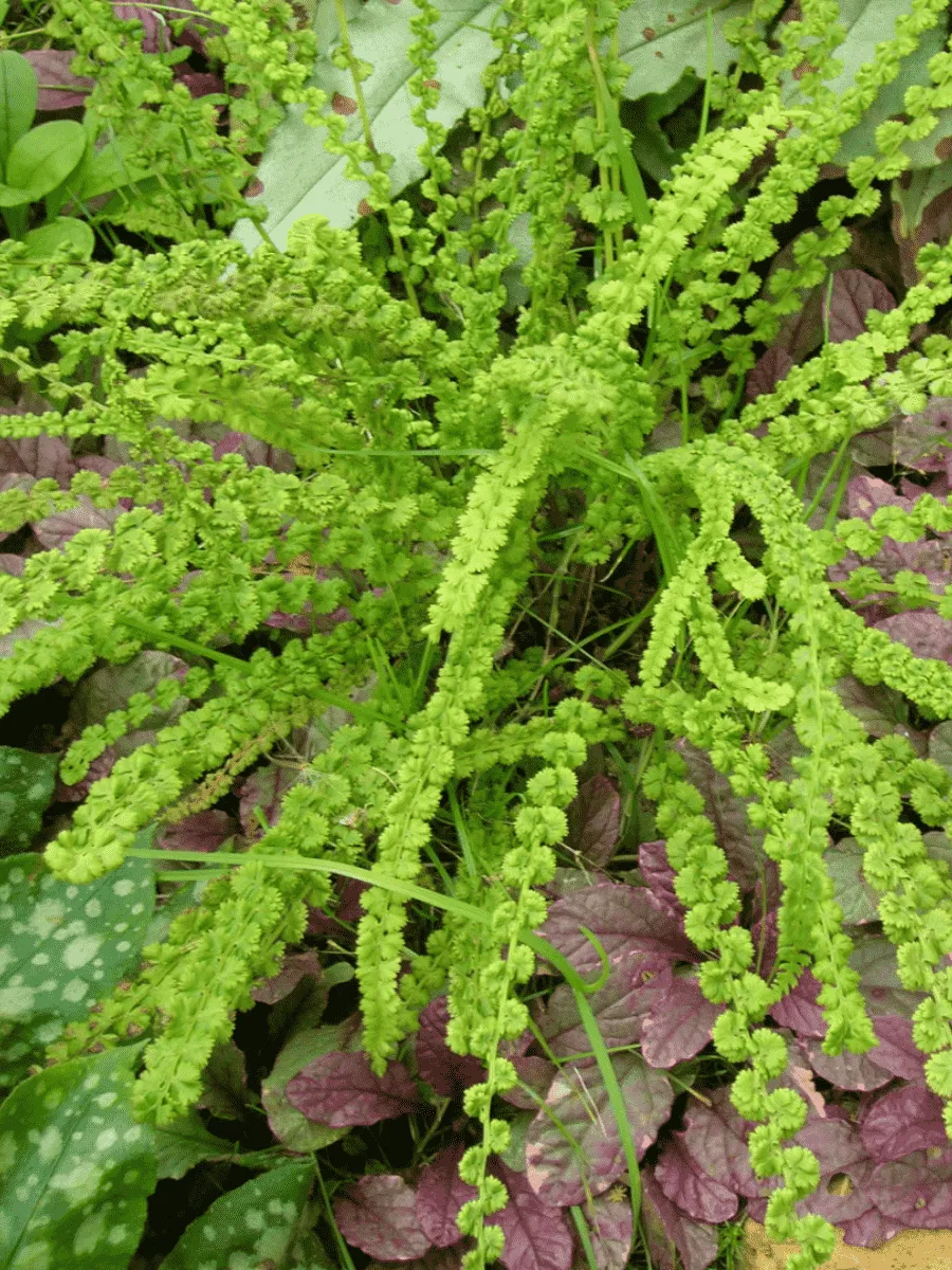 Кочедыжник женский (*Frizelliae*) — грациозная представительница семейства папоротников, покоряющая сердца любителей природы своей нежной красотой и утончённостью форм. Это многолетнее растение образует пышную розетку перистых листочков, словно кружевных лепестков, нежно-зелёного цвета с лёгким серебристым отливом, придающим ей особую воздушность и загадочность. Листья крупные, ажурные, рассечённые на многочисленные сегменты, плавно переходящие друг в друга, создавая впечатление мягкого зелёного облака. Стебли тонкие, гибкие, слегка извилистые, поднимают листья над поверхностью земли, подчёркивая хрупкость и элегантность облика. Растёт преимущественно во влажных тенистых местах лесов, предпочитая богатые гумусом почвы, где создаёт живописные заросли, украшая собой лесные уголки и придавая им особый шарм и очарование. Цветение отсутствует, размножается спорами, созревающими на нижней стороне листьев, что делает этот папоротник ещё более таинственным и притягательным объектом внимания садоводов и натуралистов.