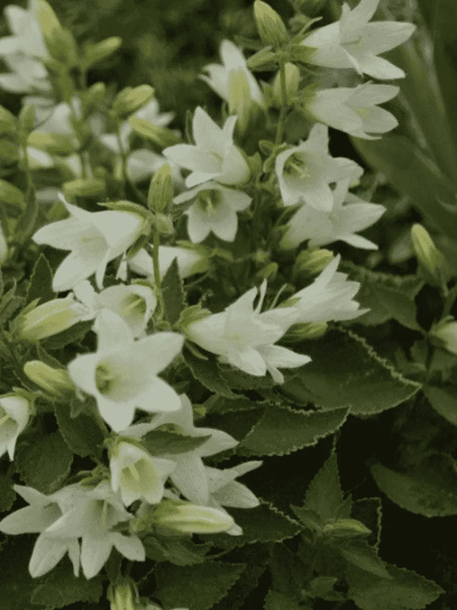 Колокольчик чесночницелистный Snow Dune очаровывает своей нежной красотой и утончённостью форм. Это многолетнее травянистое растение достигает высоты около полуметра, обладая прямостоячими крепкими стеблями, покрытыми узкими линейно-ланцетными листьями насыщенного зелёного цвета, слегка шероховатыми на ощупь. Листья расположены очередно вдоль всего стебля, придавая растению стройность и лёгкость. Цветки собраны в рыхлые кистевидные соцветия, свисающие подобно миниатюрным колокольчикам, обращённым книзу. Белоснежная окраска лепестков подчёркивает чистоту и свежесть облика растения, создавая впечатление хрупкости и воздушности. Период цветения приходится на июнь–июль, когда многочисленные цветки раскрываются одновременно, наполняя сад ароматом и привлекая внимание насекомых-опылителей. Растёт преимущественно на плодородных почвах, предпочитая солнечные места или полутень, легко адаптируясь к различным условиям произрастания благодаря своей неприхотливости и устойчивости к неблагоприятным факторам среды.
