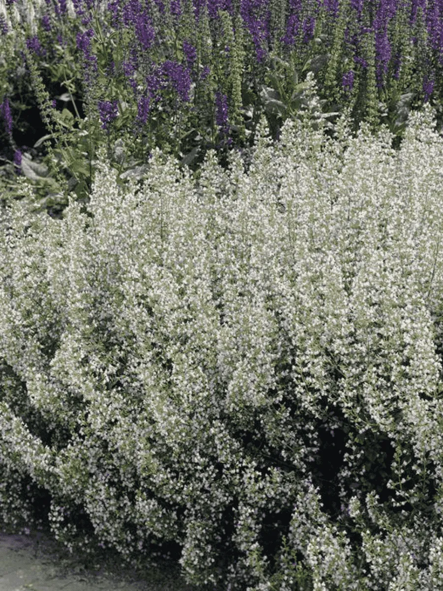Котовник Фассена Snowflake — изысканное травянистое растение семейства Яснотковые (Lamiaceae), покоряющее сердца садоводов нежностью серебристо-зелёной листвы и воздушными облаками белоснежных цветков. Его узколанцетные листья покрыты мягким пушком, создавая эффект лёгкого шелестящего бархата, который особенно заметен в лучах утреннего солнца. Цветки собраны в рыхлые колосовидные соцветия, возвышающиеся над кустиком на стройных стеблях высотой до полуметра. Нежность цветения подчёркивается тонким ароматом, привлекающим пчёл и бабочек. Растёт компактным аккуратным кустом, легко адаптирующимся к различным условиям освещения и почвенным типам, предпочитая солнечные места и умеренный полив. Благодаря своей неприхотливости и декоративности, этот котовник широко используется в ландшафтном дизайне, украшая альпийские горки, бордюры и миксбордеры, даря саду атмосферу спокойствия и гармонии.