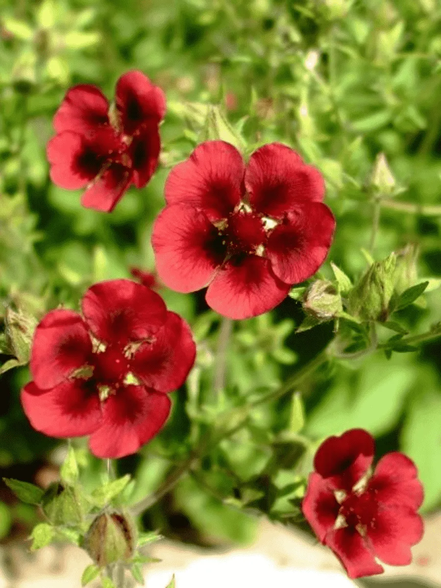 Лапчатка гибридная сорта *Monarch Velvet* пленяет взор роскошной кроной густых тёмно-зелёных листьев, словно бархатных на ощупь, украшенных изысканной зубчатостью края. Цветки её раскрываются пышным букетом крупных махровых соцветий насыщенного рубиново-красного оттенка, переливающегося оттенками от алого до пурпурного, создавая впечатление огненных вспышек среди зелени. Высота взрослого куста достигает одного метра, позволяя растению уверенно занимать пространство сада, демонстрируя свою элегантную силуэтность и благородство форм. Корневая система мощна и разветвлена, обеспечивая устойчивость даже на открытых участках, где растение легко переносит ветер и солнце, сохраняя свежесть облика. Сорт отличается продолжительностью цветения, начиная радовать глаз уже весной и заканчивая лишь поздней осенью, когда последние лепестки медленно уступают место зимнему покою.