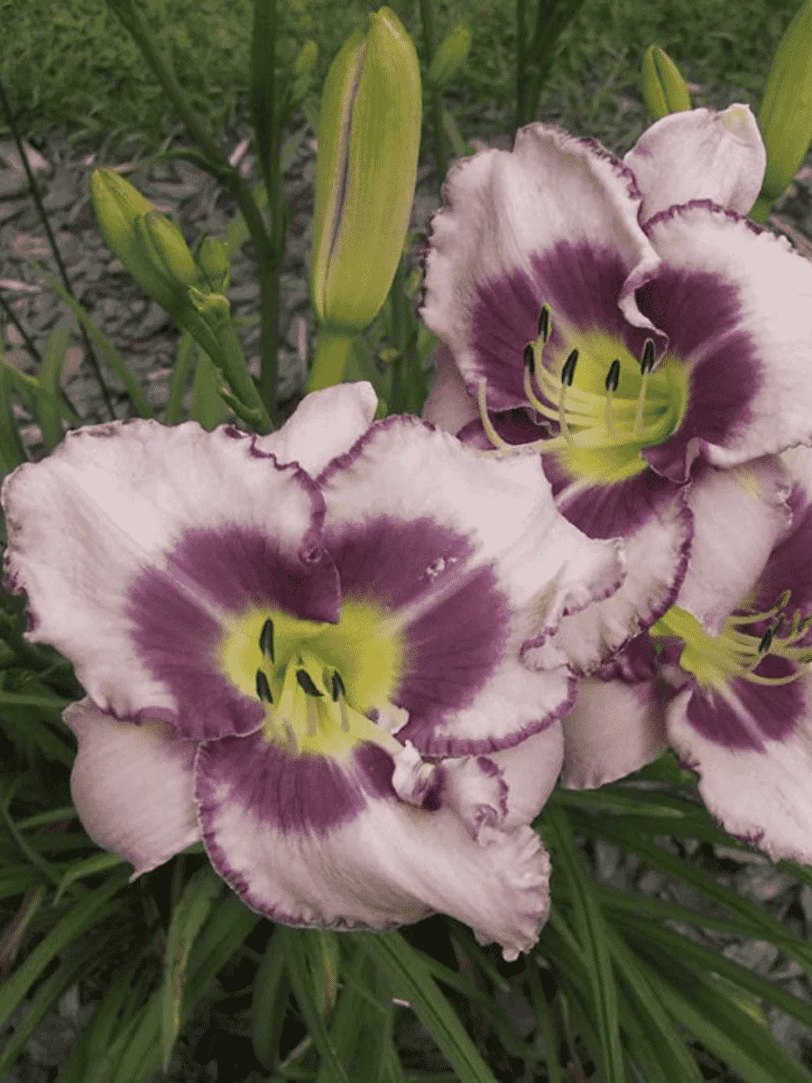 Лилейник *Edge Ahead* пленяет взор изысканным сочетанием благородной зелени и нежнейших цветков, словно воплощением гармонии природы. Его листья узколанцетные, длинные и слегка дугообразно изгибающиеся, образуют пышную розетку, придающую растению элегантность и утончённость. Цветоносы возвышаются над листвой стройными колоннами, увенчанные крупными бутонами, раскрывающимися в роскошные цветы диаметром около 15 см. Лепестки цветка нежно-кремовые с золотистым оттенком, плавно переходящим в насыщенно-жёлтый центр, украшенный тонкими пурпурными штрихами, будто кистью мастера нанесёнными поверх шёлковой ткани лепестков. Период цветения продолжительный, растение радует глаз яркими красками с июня до августа, постепенно сменяя распустившиеся цветки свежими бутонами. Культура неприхотлива, устойчива к болезням и зимостойка, прекрасно адаптируется к различным условиям произрастания, предпочитая солнечные места и плодородные почвы. Благодаря своей декоративности и простоте ухода, лилейник *Edge Ahead* становится украшением садов и парков, радуя взгляд своим великолепием долгие годы.