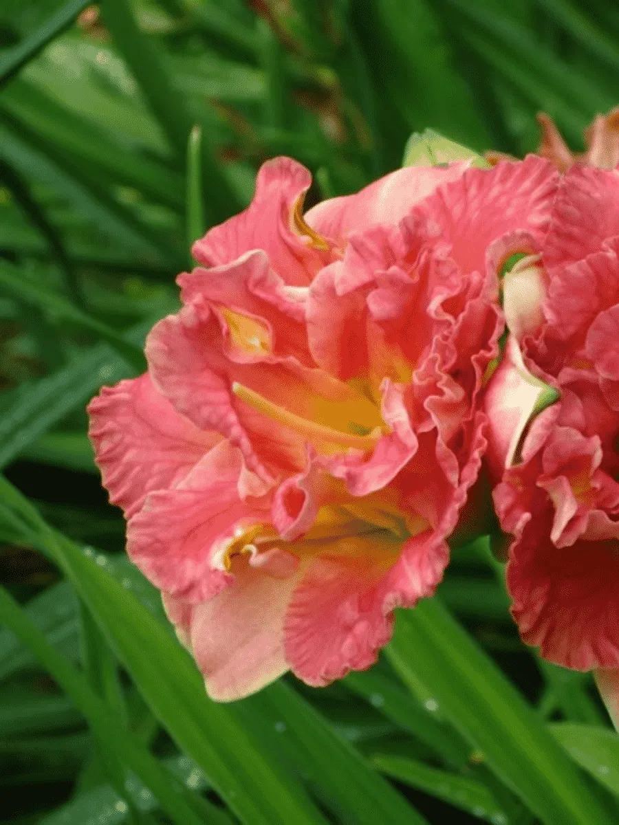 Лилейник *Lacy Doily* пленяет взор нежностью своего облика и изысканностью форм. Листья узколинейные, длинные, слегка дугообразно изгибающиеся, словно тонкие зелёные ленты, мягко струящиеся от основания куста к земле. Цветоносы стройные, высокие, несут крупные цветки диаметром около 15 см, раскрываясь один за другим в течение длительного периода цветения. Лепестки цветков нежно-кремовые, почти белые, с едва заметной сеточкой тонких розово-лиловых прожилок, придающих лепесткам лёгкую прозрачность и воздушную невесомость кружевного полотна. Центр цветка украшен контрастным жёлтым пятном, подчёркивающим утончённую элегантность соцветий. Растёт куст компактно, сохраняя аккуратную форму даже после окончания цветения, легко адаптируется к различным условиям произрастания, предпочитая солнечные места и плодородные почвы. Этот лилейник очаровывает своей простотой и одновременно благородством, становясь украшением любого сада и источником вдохновения для садоводов-любителей и профессионалов.