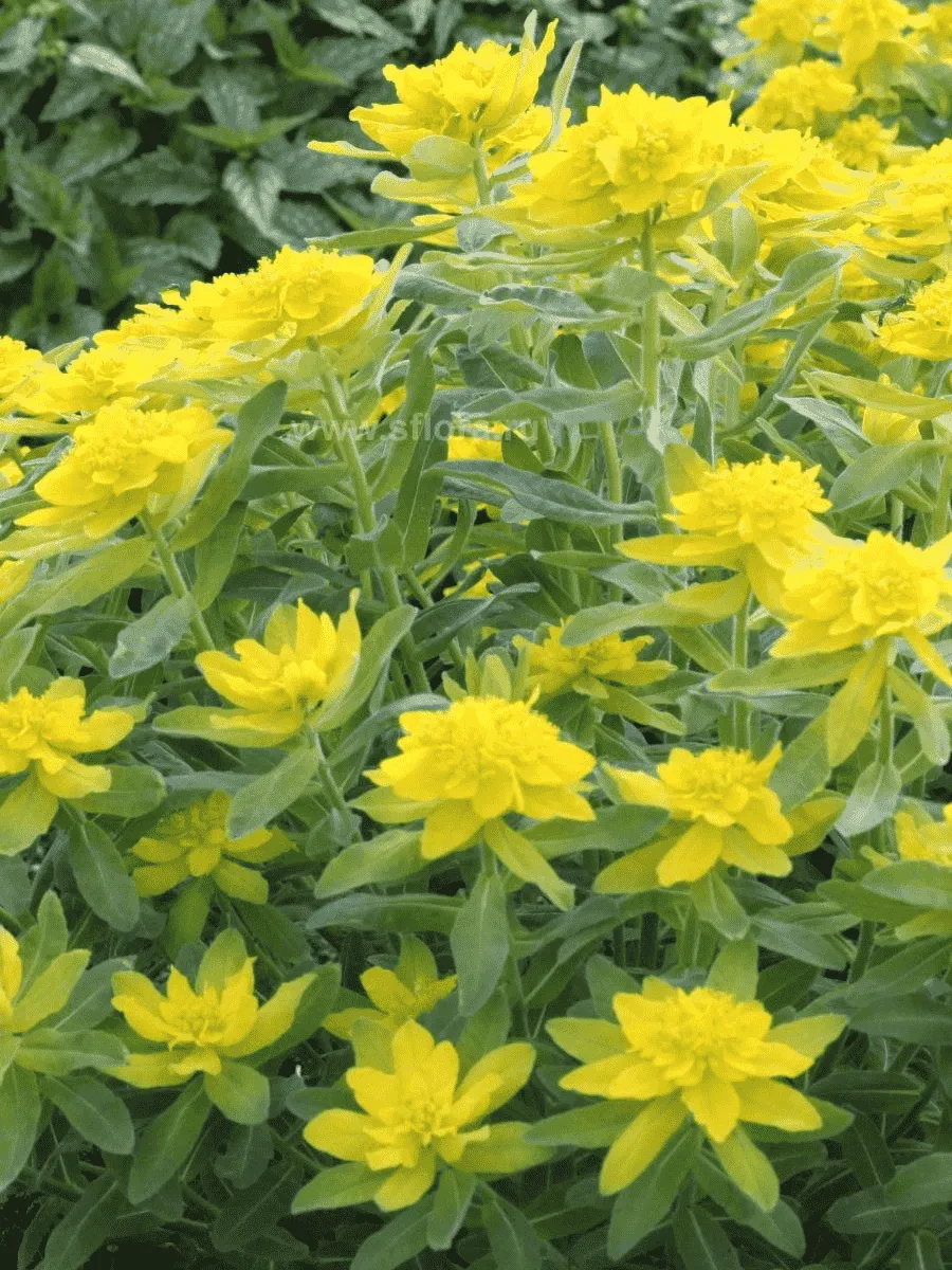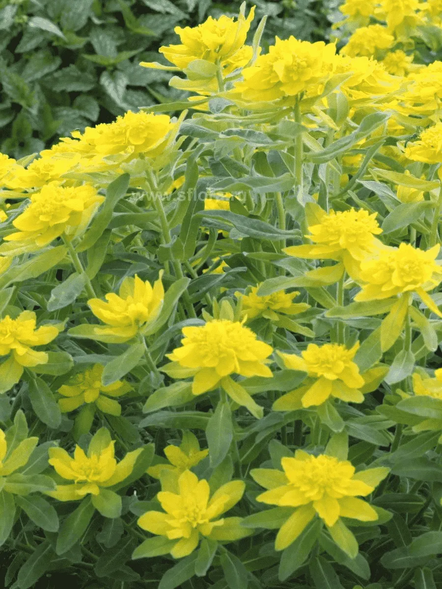 Молочай многоцветковый (*Euphorbia polychroma*) — многолетнее травянистое растение семейства молочайных, покорившее сердца садоводов своей неприхотливостью и декоративностью. Стройные побеги высотой до полуметра украшены густо расположенными листьями насыщенно-зелёной окраски, слегка вытянутых очертаний, придающих растению элегантную строгость облика. Весной верхушки стеблей покрываются яркими золотисто-жёлтыми соцветиями-циатиями, состоящими из множества мелких цветков, словно солнечные лучики, озаряющие сад нежным сиянием. Растёт компактными кустиками, предпочитая сухие плодородные почвы и солнечное местоположение, легко размножается семенами и черенкованием. Благодаря своему привлекательному внешнему виду и способности долго сохранять свежесть цветения, этот молочай стал незаменимым элементом ландшафтного дизайна, украшая клумбы, бордюры и каменистые сады.