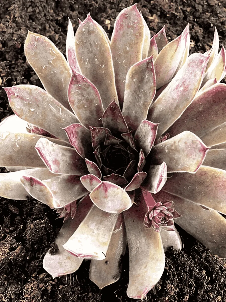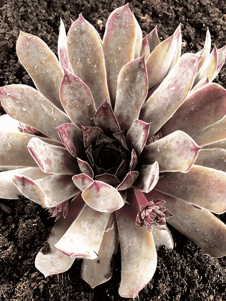 Молодило кровельное 'Julia' (Sempervivum tectorum 'Julia') — миниатюрная суккулентная розетка, покоряющая сердца садоводов своей изысканной простотой и неприхотливостью. Листья плотные, мясистые, слегка вытянутые, образуют компактную округлую розетку диаметром около 5–8 см. Окраска насыщенно-зелёная с серебристым отливом, края листочков украшены нежной красной каймой, придающей растению особую декоративность. Цветёт редко, летом выбрасывая высокие тонкие стрелки с мелкими звёздчатыми цветами жёлтого оттенка, однако основное очарование заключается именно в листьях. Растение отличается медленным ростом, легко размножается дочерними розетками, формирующимися вокруг материнского куста. Благодаря способности выживать даже в суровых условиях, молодило прекрасно подходит для альпийских горок, рокариев и контейнерных посадок, украшая садовые композиции круглый год своим неизменным благородством и элегантностью.