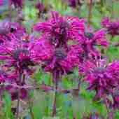 Монарда гибридная сорта *Melua Burgundy* пленяет взор роскошной палитрой оттенков и утончённой формой соцветий. Это многолетнее травянистое растение достигает высоты от 60 до 80 сантиметров, обладая крепким прямостоячим стеблем и крупными ароматическими листьями насыщенного зелёного цвета с зубчато-волнистыми краями. Листья расположены супротивно, имеют овально-заострённую форму и слегка морщинистую поверхность, источающую приятный лимонно-мятный запах при прикосновении. Цветки собраны в плотные головчатые соцветия диаметром около 5–7 см, состоящие из множества мелких трубчатых цветков глубокого винно-красного оттенка, переходящего в пурпурный тон ближе к центру. Период цветения продолжительный, начинается в июле и длится до конца августа, привлекая внимание своей декоративностью и способностью привлекать полезных насекомых. Растение предпочитает солнечные места с плодородной почвой, хорошо переносит умеренные засухи и легко размножается делением корневища весной или осенью. Благодаря своему привлекательному внешнему виду и приятному аромату монарда широко используется в ландшафтном дизайне, украшая клумбы, бордюры и миксбордеры, создавая атмосферу гармонии и природного очарования.