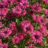 Монарда гибридная *Pink Lace* пленяет взор нежностью своего облика и утончённостью форм. Это многолетнее растение достигает высоты около полуметра, формируя компактную кустистую крону с прямостоячими стеблями, покрытыми мелкими волосками. Листья тёмно-зелёные, овально-ланцетной формы, слегка зубчатые по краям, источают приятный аромат мяты и цитрусовых, особенно ощутимый при прикосновении. Цветки собраны в крупные головчатые соцветия, состоящие из множества мелких трубчатых цветков нежно-розового оттенка, окружённых яркими пурпурными листочками-обёртками, придающими растению особую декоративность. Период цветения продолжительный, начинается в июле и длится до конца августа, привлекая внимание насекомых-опылителей своим ярким видом и сладким ароматом. Предпочитает солнечные места и плодородные почвы, легко размножается делением куста и семенами, быстро адаптируясь к различным условиям произрастания.
