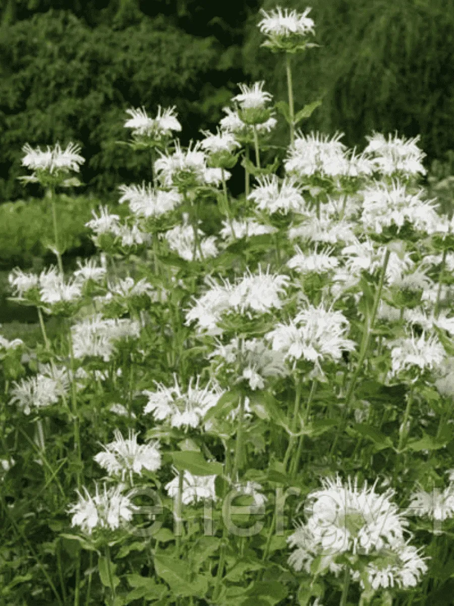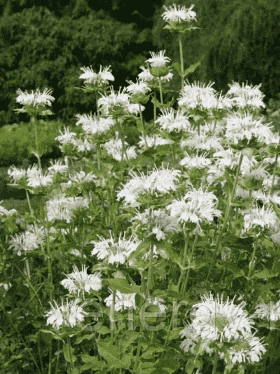 Монарда гибридная *Schneewittchen* пленяет взор своей изысканной красотой и нежностью форм. Это многолетнее травянистое растение достигает высоты от полуметра до метра, обладая прямостоячими крепкими стеблями, покрытыми мелкими волосками. Листья крупные, овально-ланцетной формы, слегка зубчатые по краям, насыщенно-зелёного цвета, источают приятный аромат, особенно ощутимый после дождя или лёгкого прикосновения. Цветки собраны в пышные головчатые соцветия, расположенные на концах ветвей, белоснежные лепестки словно сотканы из тонкой кружевной ткани, контрастируя с тёмнозелёной листвой и создавая впечатление свежести и чистоты. Период цветения продолжительный, начинается в середине лета и длится до осени, привлекая внимание множества насекомых-опылителей своим ароматом и элегантностью. Растёт быстро, легко размножается делением куста и семенами, прекрасно адаптируется к различным условиям произрастания, предпочитая солнечные места и плодородную почву.