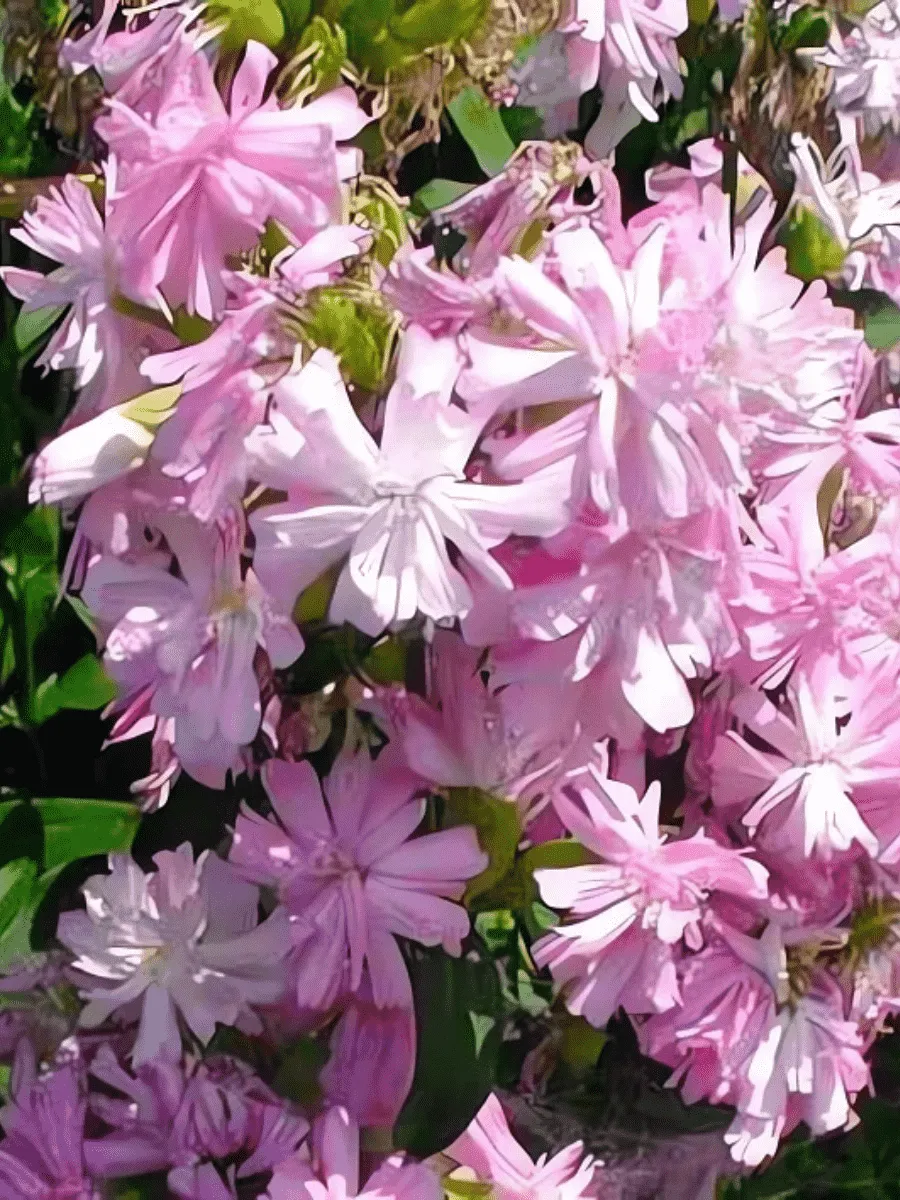 Мыльнянка лекарственная Rosea Plena — очаровательное травянистое растение с нежной зеленью и пышными соцветиями, украшающее сады и парки своей изысканной красотой. Стебли её тонкие, слегка извилистые, поднимаются вверх стройными рядами, достигая высоты около полуметра. Листья узколанцетные, гладкие, насыщенно-зелёного цвета, расположены супротивно вдоль стебля, создавая впечатление лёгкого кружева. Цветёт мыльнянка обильно и продолжительно, покрываясь крупными махровыми цветами розового оттенка, собранными в рыхлые верхушечные кисти. Лепестки цветков многослойные, волнистые, словно искусная вышивка, придают растению особую воздушность и утончённость. Предпочитает солнечные места, хорошо растёт на плодородных почвах, легко размножается корневищем и семенами, распространяя свою красоту повсюду, где находит благоприятные условия для жизни.