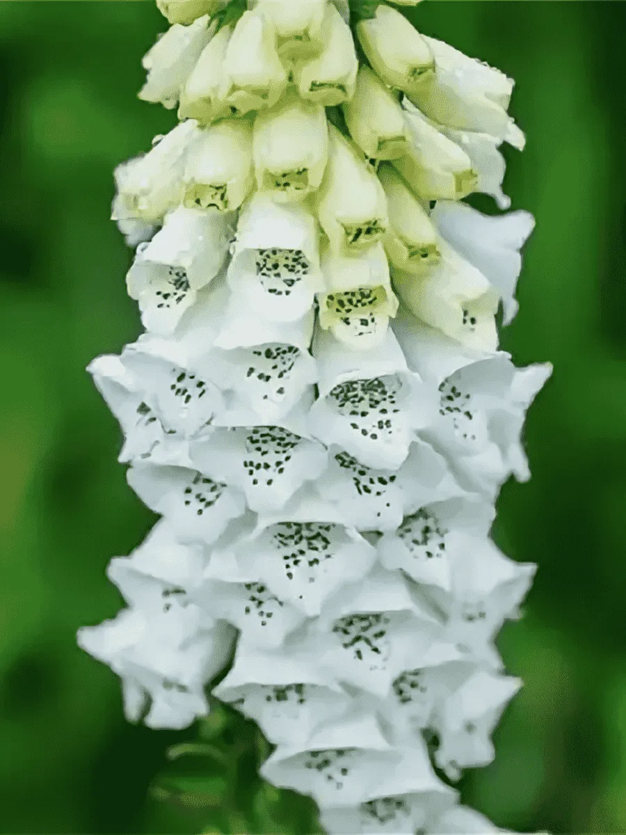 Наперстянка пурпурная Alba (Digitalis purpurea f. alba) — элегантная двулетняя травянистая красавица семейства подорожниковых, покоряющая сердца садоводов нежностью своего облика. Стройный прямой стебель высотой до полутора метров увенчан пирамидальной кистью крупных колокольчатых цветков молочно-белого цвета, словно сотканных из тонкой кружевной ткани. Листья крупные, продолговато-ланцетные, слегка морщинистые, покрыты мягким серо-зелёным пушком, придающим растению бархатистый шарм. Цветёт наперстянка долго и обильно, начиная с июня и продолжаясь вплоть до конца июля, привлекая пчёл своим сладким ароматом и изысканной формой цветов. Предпочитает умеренно влажную плодородную почву и полутень, легко размножается самосевом, создавая живописные островки белоснежного великолепия среди зелёного ковра сада.
