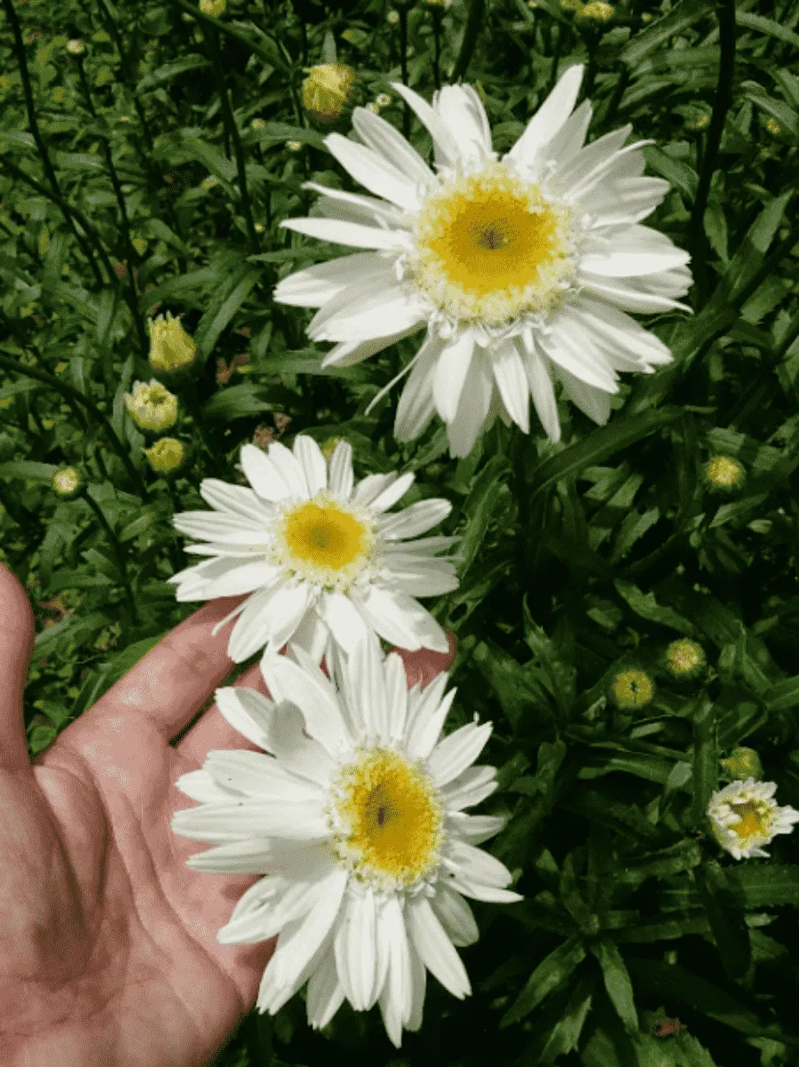 Нивяник наибольший сорта *Sunny Side Up* пленяет взор своей изысканной простотой и благородством форм. Это многолетнее травянистое растение достигает высоты до полуметра, обладая крепким прямостоячим стеблем, покрытым короткими волосками. Листья тёмно-зелёные, продолговато-ланцетной формы, слегка шероховатые на ощупь, расположены очередно вдоль всего стебля, создавая гармоничную зелёную оправу для ярких цветов. Цветки крупные, одиночные, диаметром около десяти сантиметров, напоминают солнечные лучи, сияющие среди зелени. Серединка цветка насыщенно-жёлтая, окружённая белоснежными лепестками, словно нежная улыбка природы. Период цветения продолжительный, начинается в июне и длится до конца лета, украшая сады и парки яркими солнечными пятнами. Растёт нивяник свободно, легко адаптируясь к различным условиям, предпочитая светлые места и плодородные почвы, распространяя вокруг себя атмосферу радости и тепла.