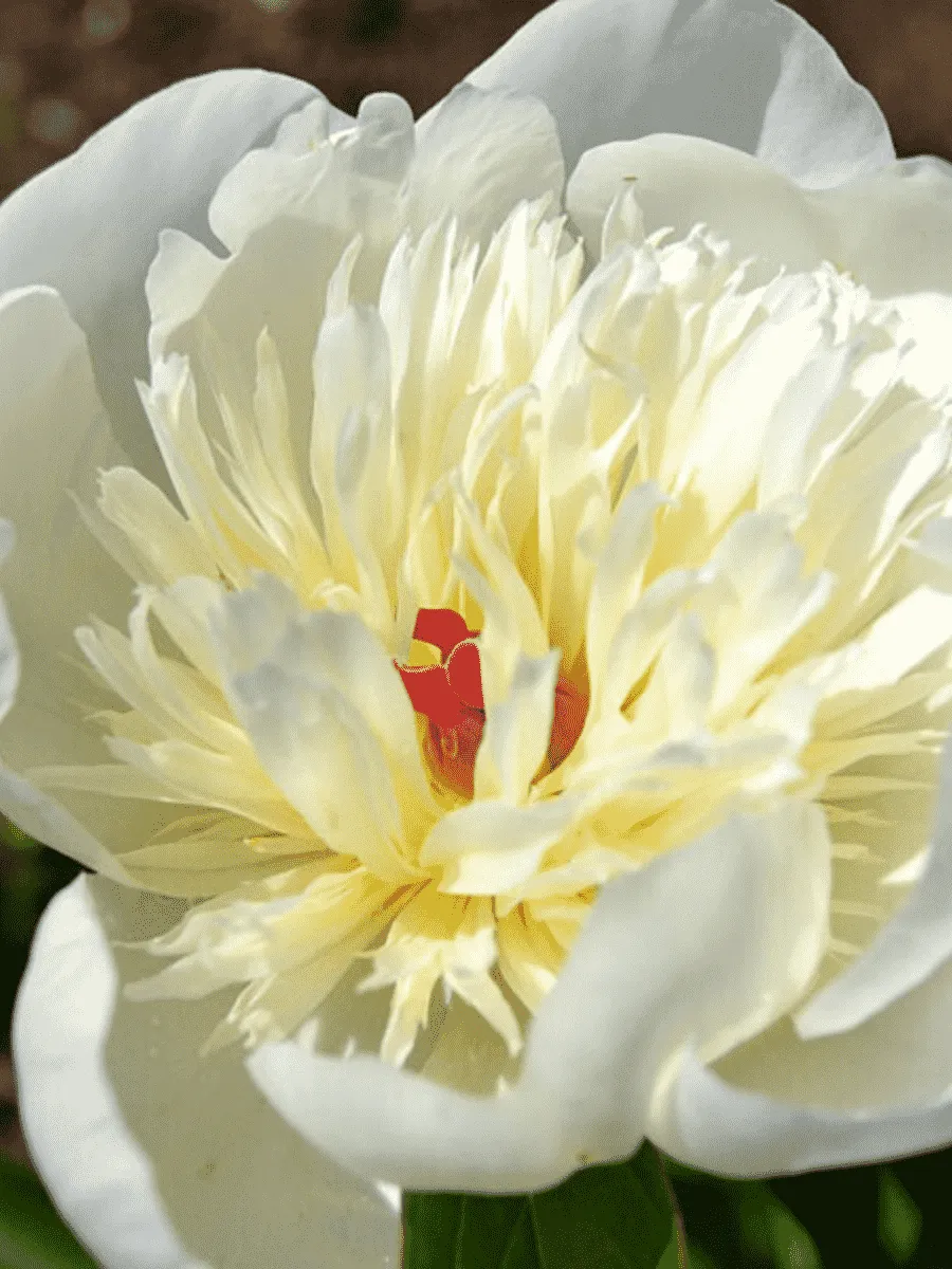 Пион молочноцветковый сорта *Immaculee* пленяет взор своей изысканной красотой и благородством форм. Высокий куст достигает метра высоты, украшая сад пышной зелёной листвой насыщенного тёмно-зелёного оттенка, слегка блестящей и рассечённой на узкие сегменты, придающей растению особую декоративность даже вне периода цветения. Цветки крупные, диаметром до 18 см, идеально белые, словно свежевыпавший снег, с нежнейшими лепестками, плавно переходящими от кремово-белого центра к чистейшему белоснежному краю. Сердцевина цветка подчёркнута золотистыми тычинками, добавляющими лёгкий контраст и завершённость композиции. Бутоны появляются в конце мая—начале июня, раскрываясь постепенно и радуя глаз около трёх недель. Растёт пион медленно, предпочитая солнечные места и плодородную почву, устойчив к болезням и зимостоек, прекрасно адаптируясь к умеренному климату средней полосы России.