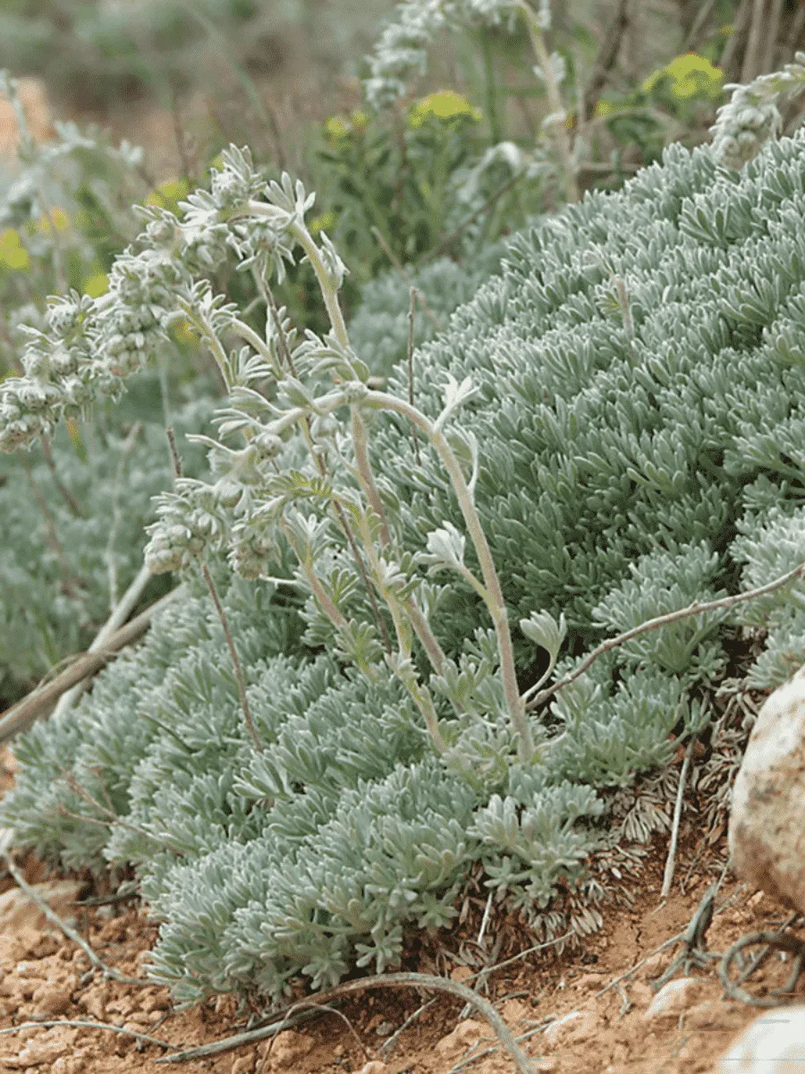 Полынь кавказская — многолетнее травянистое растение с тонким корневищем и прямостоячим стеблем высотой до метра, покрытым нежной серебристо-серой пушистой оболочкой, придающей растению изысканный благородный облик. Листья перисто-рассечённые, узколинейные, серовато-зелёные сверху и белёсые снизу от густого войлочного опушения, придают кусту воздушность и лёгкость. Цветки мелкие, жёлтые, собраны в многочисленные корзинки, формирующие рыхлые метельчатые соцветия, украшающие полынь в июле-августе. Растёт преимущественно на сухих каменистых склонах, луговых степях и лесных полянах Кавказа и Предкавказья, предпочитая солнечные места с хорошо дренированными почвами. Этот ароматический представитель семейства астровых отличается особой декоративностью благодаря своей ажурной листве и живописному облику, гармонично вписываясь в природные ландшафты горной зоны юга России.