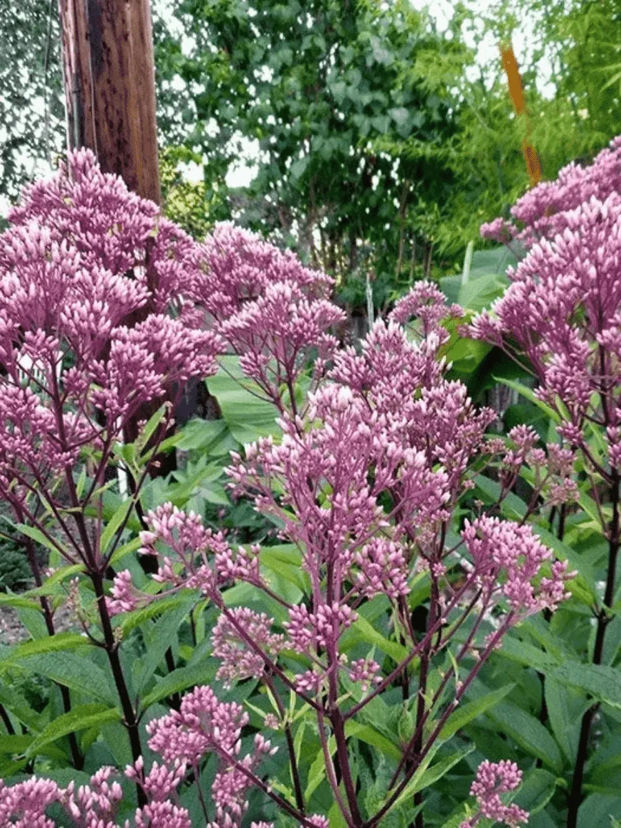 Посконник пятнистый сорта *Little Joe* — элегантная травянистая многолетняя культура, покоряющая сердца садоводов своей неприхотливостью и декоративностью. Стройные прямостоячие стебли высотой до метра украшены крупными сердцевидными листьями насыщенного зелёного цвета с характерной тёмно-пурпурной штриховатостью вдоль жилок, придающей растению особую изысканность и благородство облика. Цветёт посконник обильно и продолжительно, начиная с середины лета и вплоть до первых заморозков, покрываясь пышными метельчатыми соцветиями нежно-розового оттенка, источающими тонкий аромат и привлекающими пчёл и бабочек. Растение предпочитает солнечные места и плодородную почву, легко размножается корневищем и прекрасно подходит для оформления миксбордеров, рокариев и садовых композиций, создавая атмосферу гармонии и природного очарования.