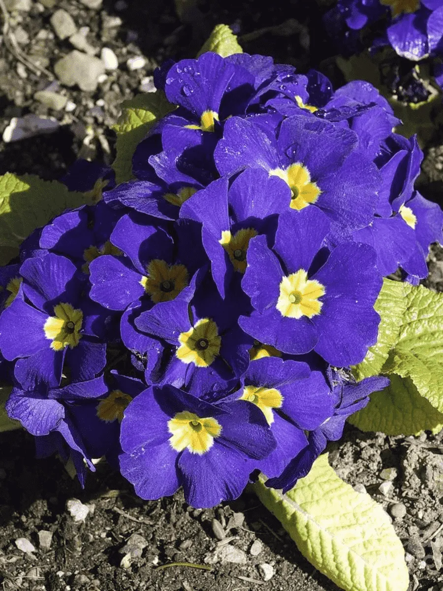 Примула бесстебельная сорта *Crescento Blue Shades* пленяет взор нежностью своего облика и изысканностью форм. Это компактное растение образует плотную розетку крупных округлых листьев насыщенного зелёного цвета с волнистым краем, словно бережно вырезанным искусной рукой природы. Листья бархатистые на ощупь, слегка морщинистые, придающие растению особую декоративность даже вне периода цветения. Цветоносы появляются прямо из центра розетки, поднимаясь над листвой на высоту до 15 см и увенчанные очаровательными цветами диаметром около 4–6 см. Лепестки цветков нежно-голубого оттенка переливаются оттенками от светло-сиреневого до глубокого синего, создавая впечатление живописного букета, распустившегося среди зелени. Цветение начинается ранней весной и продолжается несколько недель, наполняя сад чарующим ароматом и свежим дыханием весны. Растёт примула медленно, предпочитая полутень и влажные плодородные почвы, легко размножается делением куста и семенами, постепенно формируя густые ковры своей красоты.