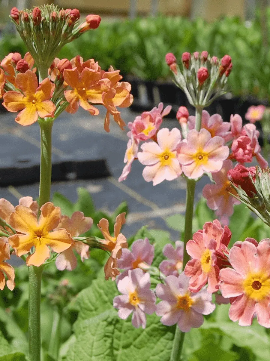 Примула Буллесиана Mix — очаровательное травянистое растение с компактной розеткой нежных зелёных листьев сердцевидной формы, украшенных волнистыми краями и бархатистым пушком, придающим особую мягкость внешнему облику. Цветки собраны в живописные зонтики, возвышающиеся над листвой на тонких прочных стеблях высотой до 15–20 см. Бутоны раскрываются постепенно, демонстрируя палитру ярких оттенков от нежно-розового до насыщенного фиолетового, создавая впечатление миниатюрного букета среди зелени сада. Период цветения продолжительный, начинается ранней весной и длится несколько недель, наполняя пространство вокруг ароматом свежести и весеннего обновления. Растение предпочитает полутень и влажную плодородную почву, легко адаптируется к различным условиям выращивания, радуя садоводов своей неприхотливостью и декоративностью.