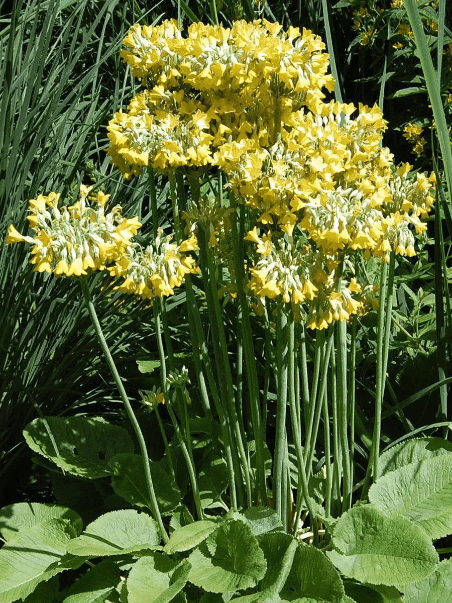 Примула флоринды — очаровательное травянистое растение родом из горных районов Китая, покоряет сердца садоводов нежностью своего облика и изысканностью цветения. Стройная розетка крупных сердцевидных листьев, покрытых бархатистым пушком, словно создана природой специально для восхищённых взглядов. Листья тёмно-зелёные, слегка волнистые по краям, придают растению благородную строгость и одновременно подчёркивают хрупкость стеблей, увенчанных крупными колокольчатыми цветами. Цветки примулы флоринды раскрываются ранней весной, когда природа ещё погружена в сон, создавая яркие островки цвета среди серых оттенков зимнего пейзажа. Их лепестки окрашены в насыщенные оттенки жёлтого, оранжевого и красного цветов, переливаясь солнечными бликами и привлекая внимание своей живописной палитрой. Растёт примула флоринды преимущественно на влажных лугах и лесных полянах, предпочитая полутень и плодородные почвы, где её цветы распускаются особенно пышно и долго радуют глаз своим великолепием.